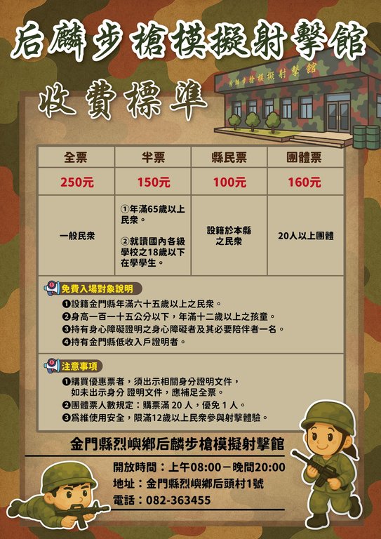 需要事先預約登記資料,打靶前十分鐘,要到現場報到,如果要換穿迷彩服,需要提前二十分鐘,憑身份證報到換裝。