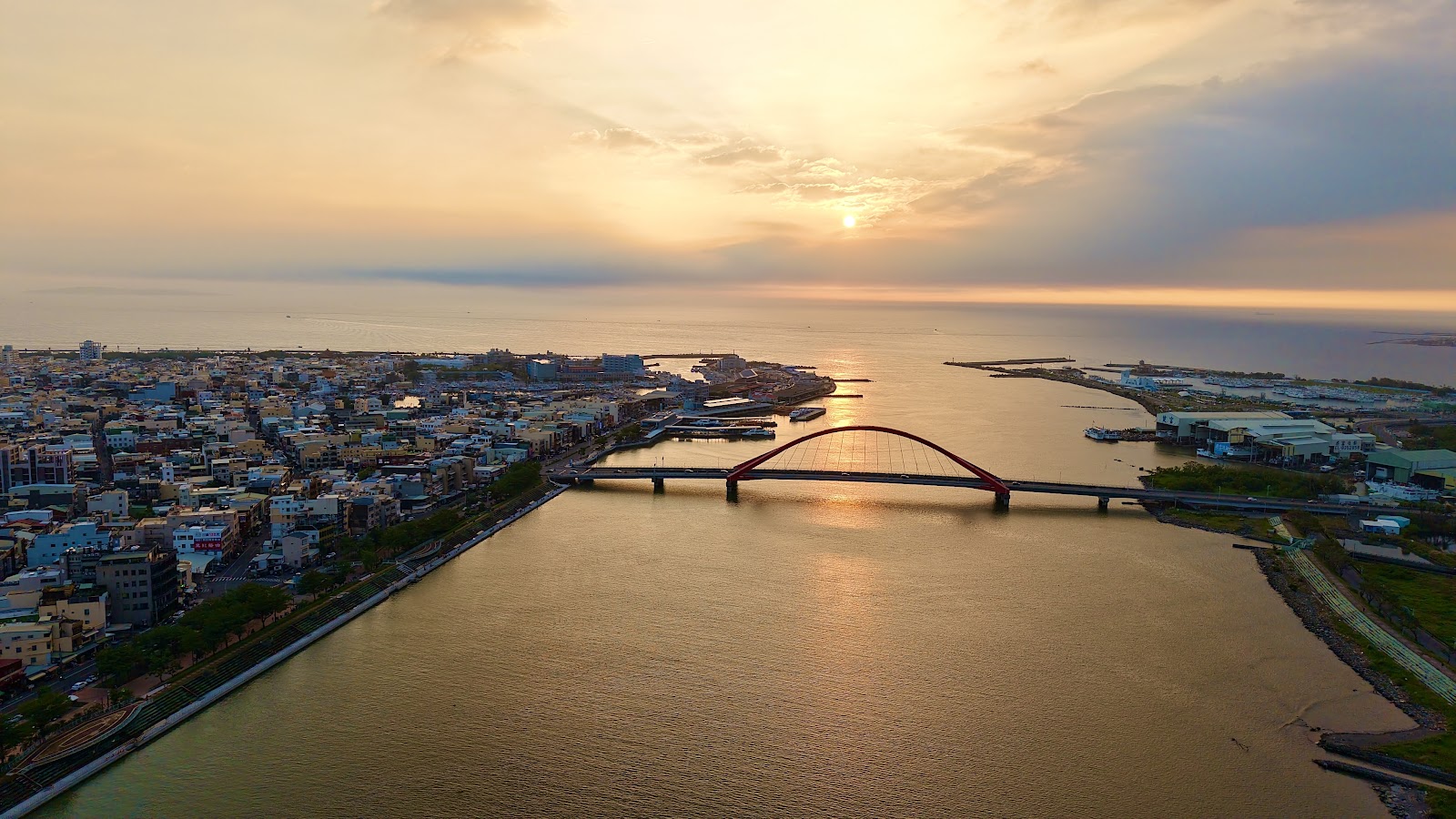 很幸運恰巧遇到日夜交錯的落日時分,河面被風拍打的閃耀,真的超美