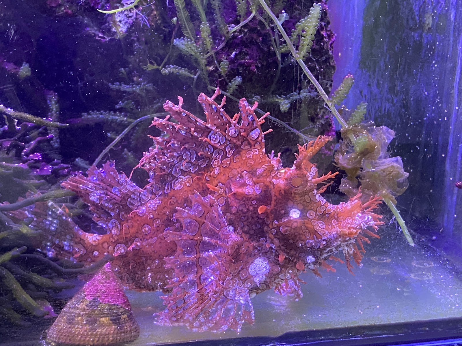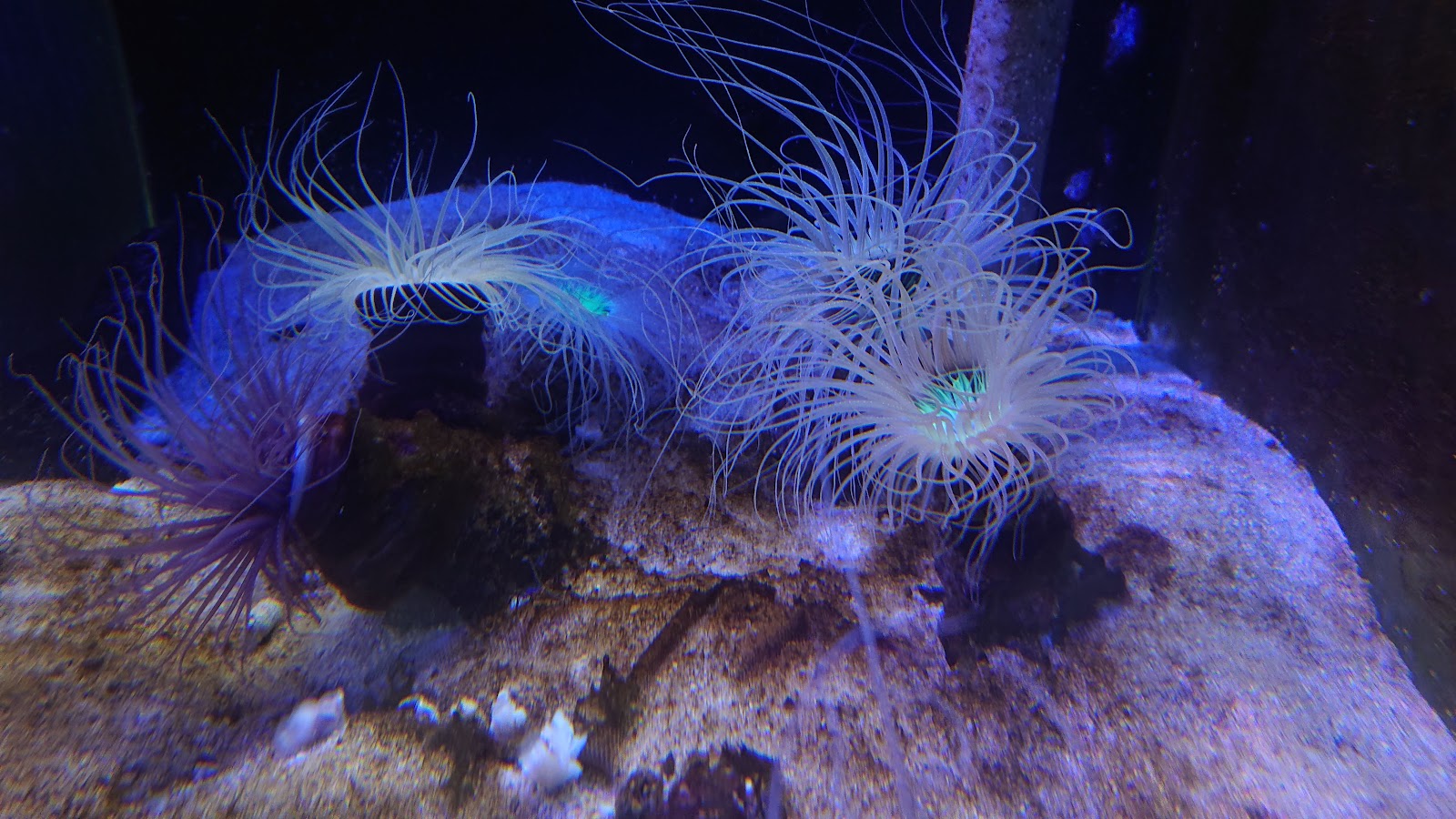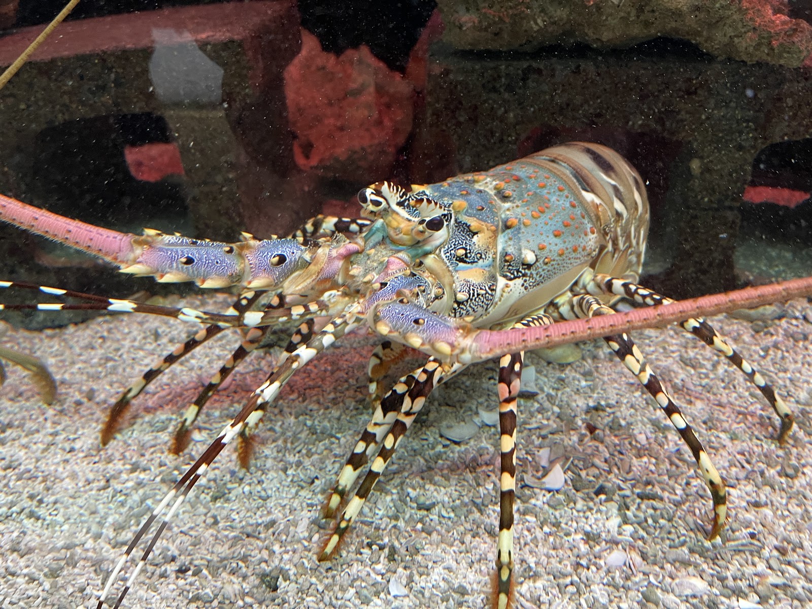 但小缺點是水缸的玻璃實在是有點髒,污漬不少,感覺清理頻率不高,很多魚類都看不太清楚,甚至還有一隻大螃蟹身上黏著一塊菜瓜布,有點傻眼~