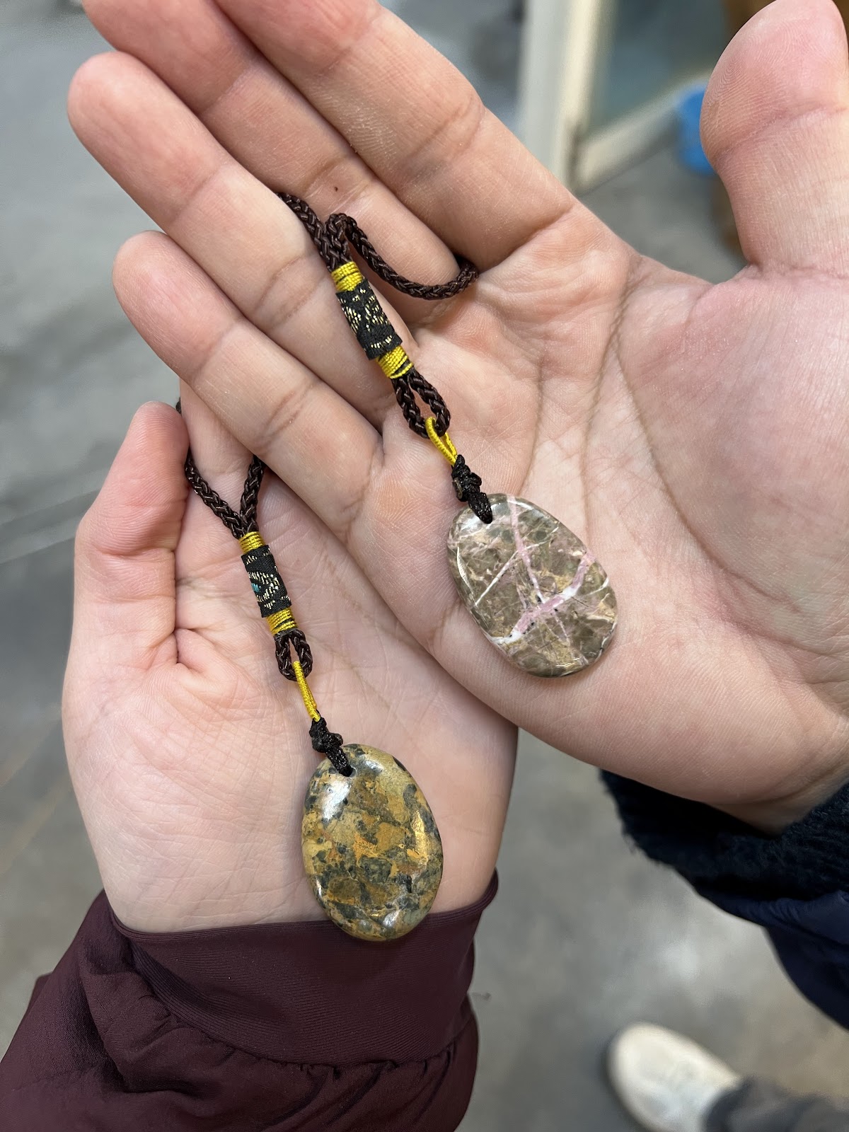 我們都選擇大致處理好的石頭,只要稍微打磨就可以了,選擇圓形的,把他都磨平,作成有點類似平安扣的形狀,師傅會再幫你細部修整,然後穿洞、拋光,之後會綁繩子給你掛,很好玩的體驗