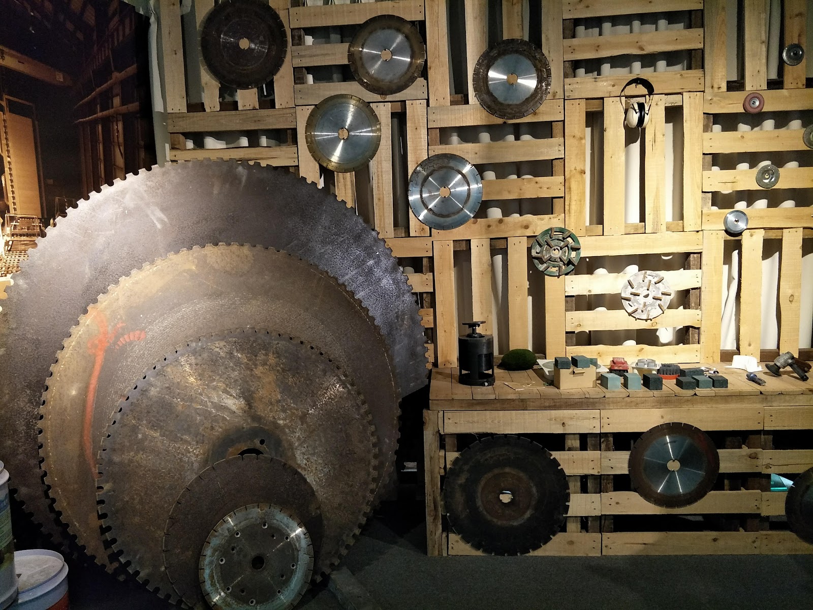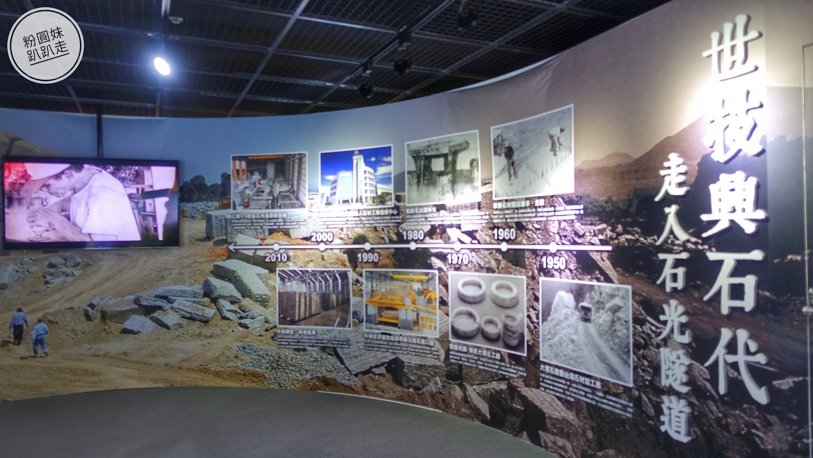 2樓介紹大理石如何採取 搬運 切分 原來對面大大顆 四方形的石頭是大理石原料 創意與藝術創作 奪目耀眼 真的很喜歡