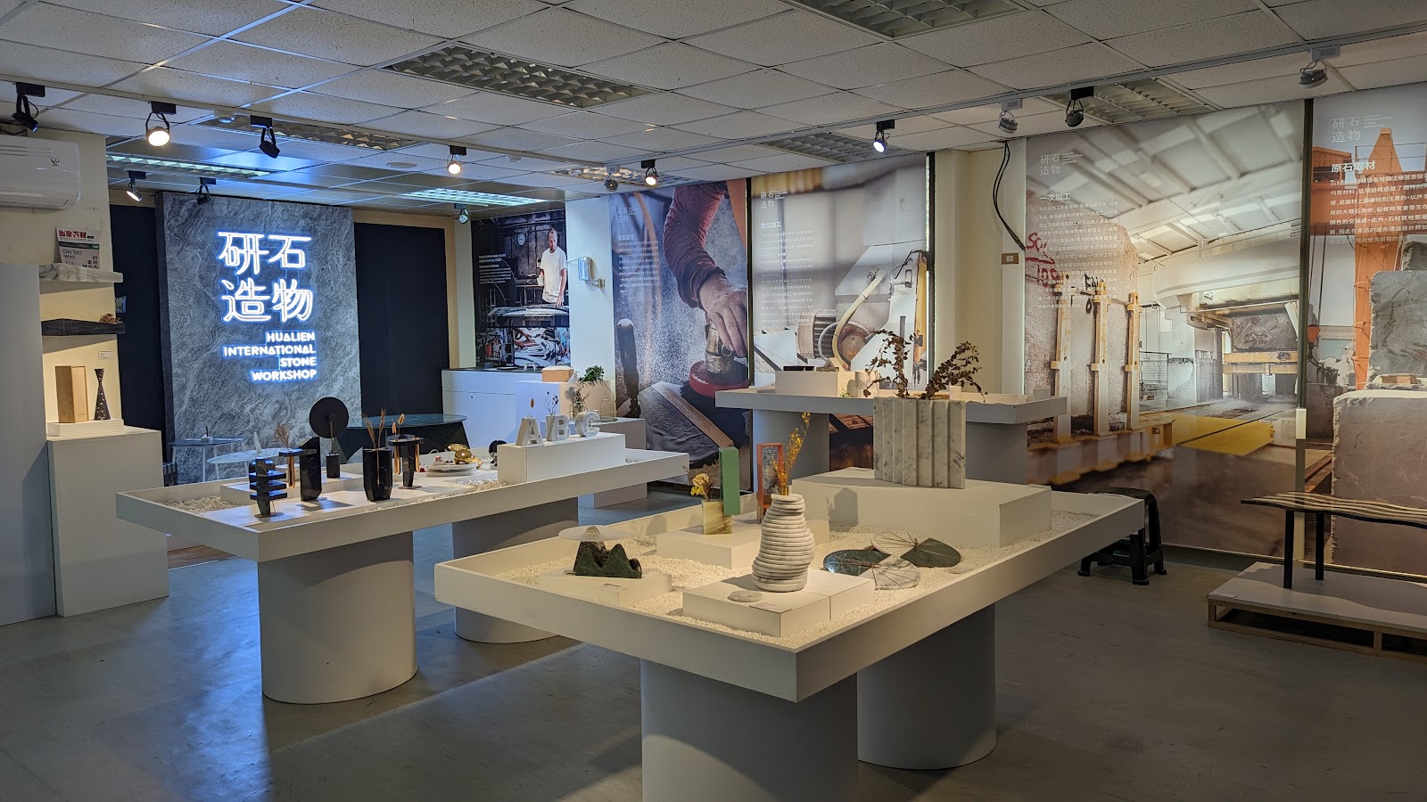 一樓是集結在地小農的商品販售處,2樓以上則是大理石開採演進的影片與作品展。