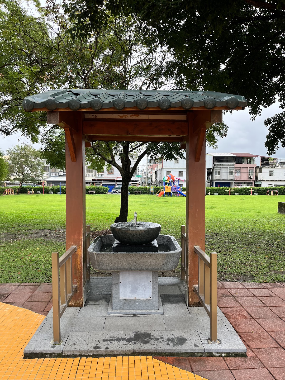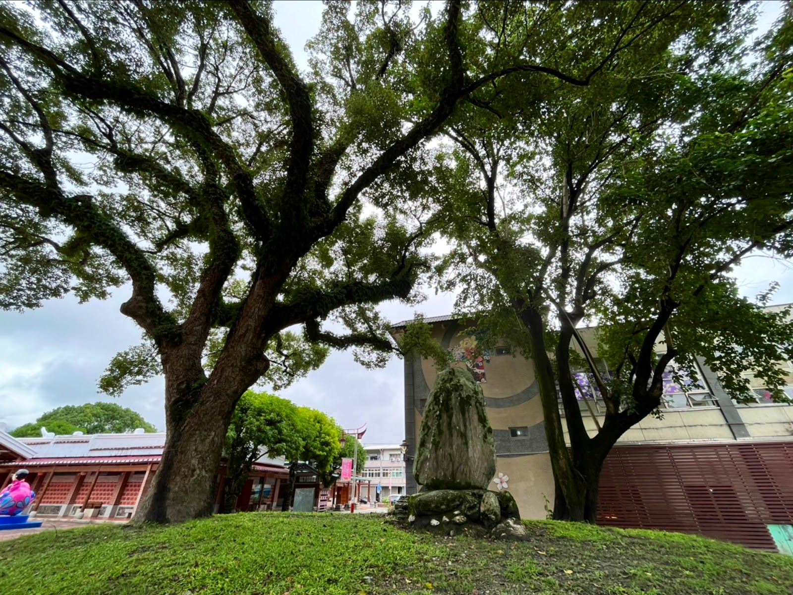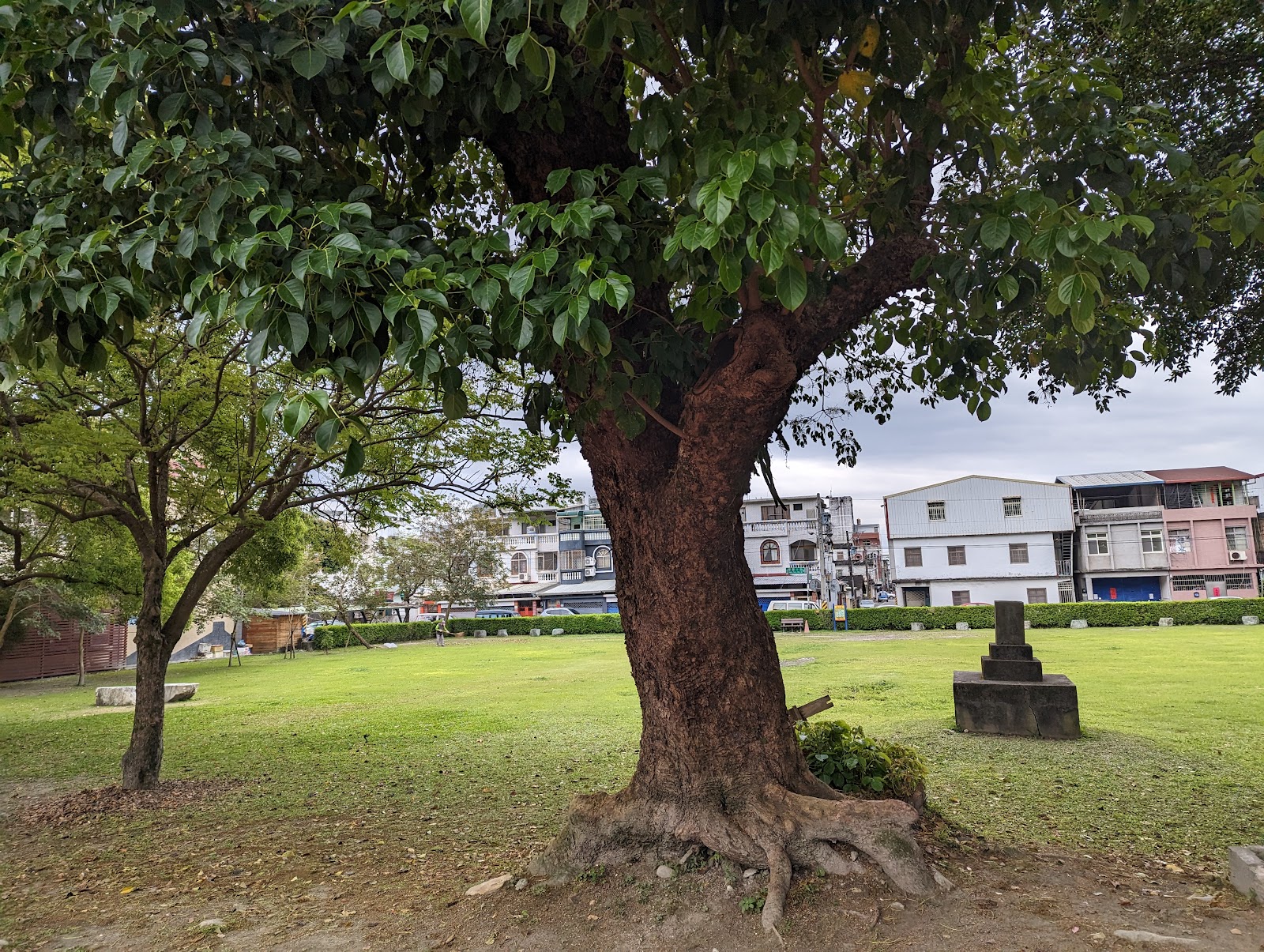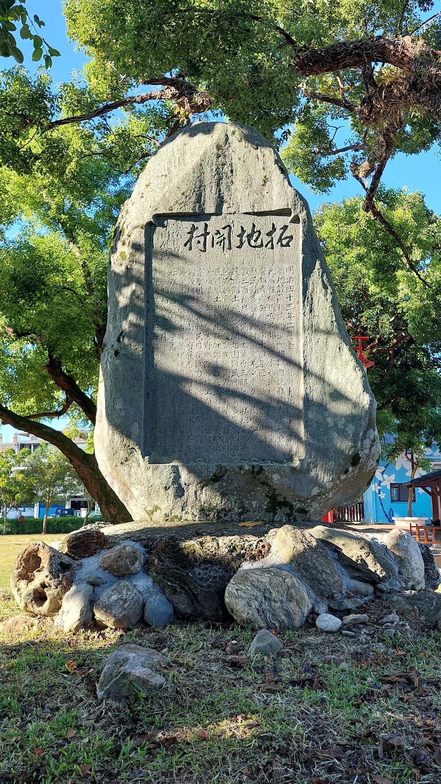 剩下一兩顆石頭遺跡,旁邊有一棵美麗的百年老樟樹,現在,在遺跡旁蓋了一座噴水的洗手池。