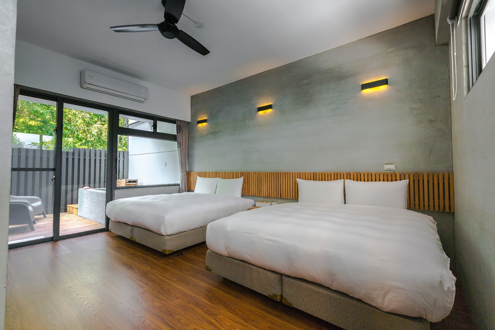 虎頭山腳下旁的溫泉民宿,每間有自己的半戶外泡湯空間,房間內陳設乾淨整齊,水泥工業風,也備有除濕機,另外有附簡易早餐可吃,整體還不錯,缺點是比較偏郊區,晚上有宵夜需求的可能要先買好,不然就是到附近的超商買,另一缺點是因為位處山區,蟲和壁虎都能隨處見,個人極害怕壁虎,以上提供給參考評論的旅人一些分享