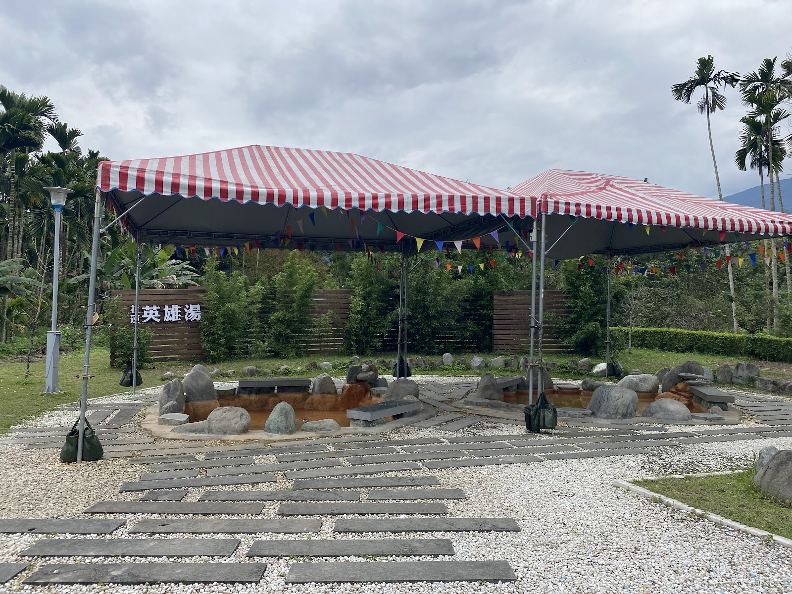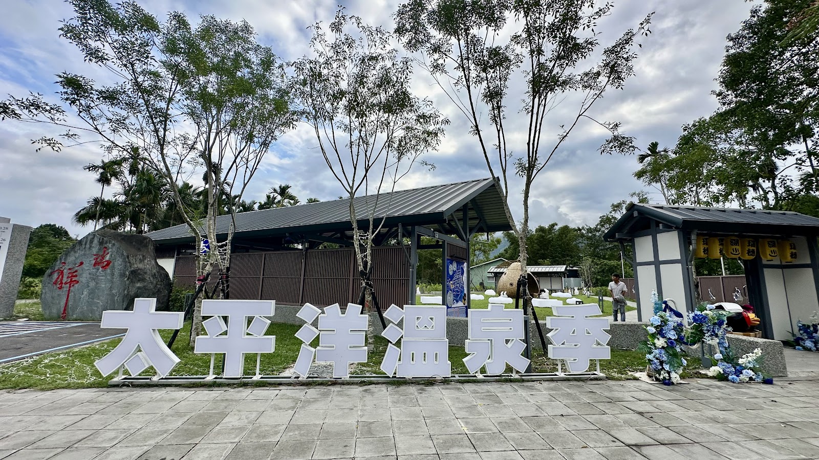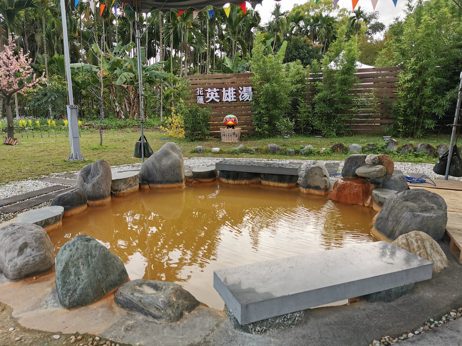 免費的泡腳池,巧遇 #花蓮太平洋溫泉季 歌手唱歌,晚上佈置滿有氣氛