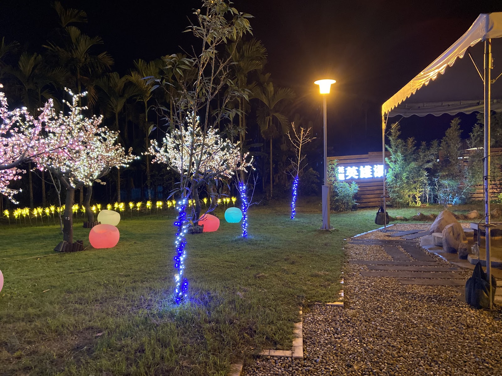 樹木扶疏!燈光絢麗!溫泉泡腳!熱血循環!問劵贈品!闔家歡樂!共度時光。