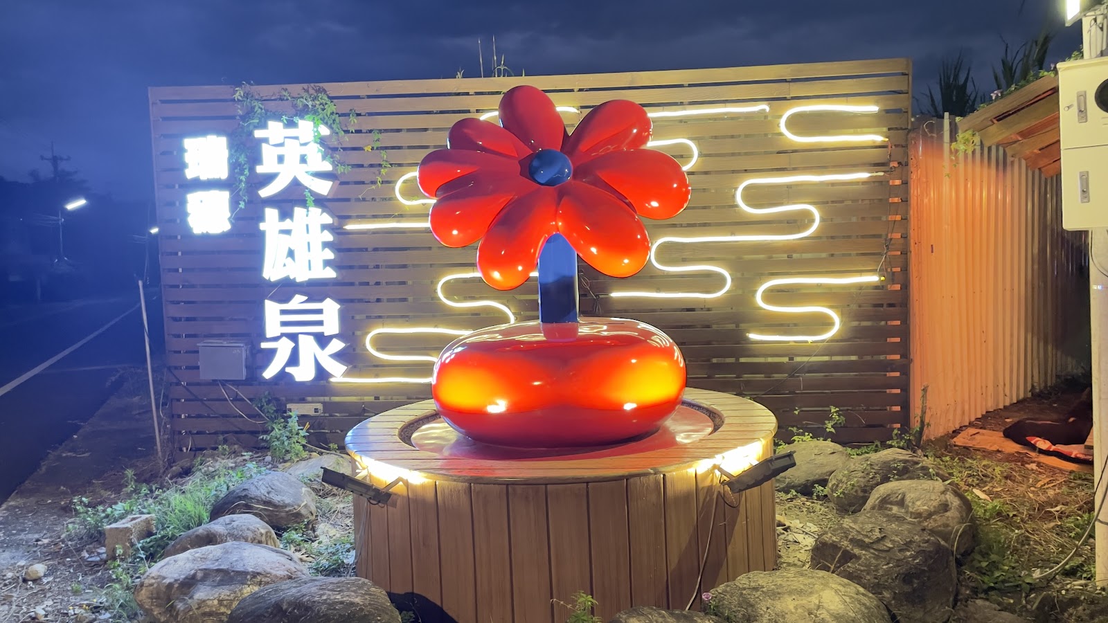 小小的公園因為溫泉季的燈飾而有了值得一去的理由,晚上來這邊欣賞一下還是很不錯的。其中巨大的花朵造型燈為互動感應裝置,個人覺得頗有巧思。