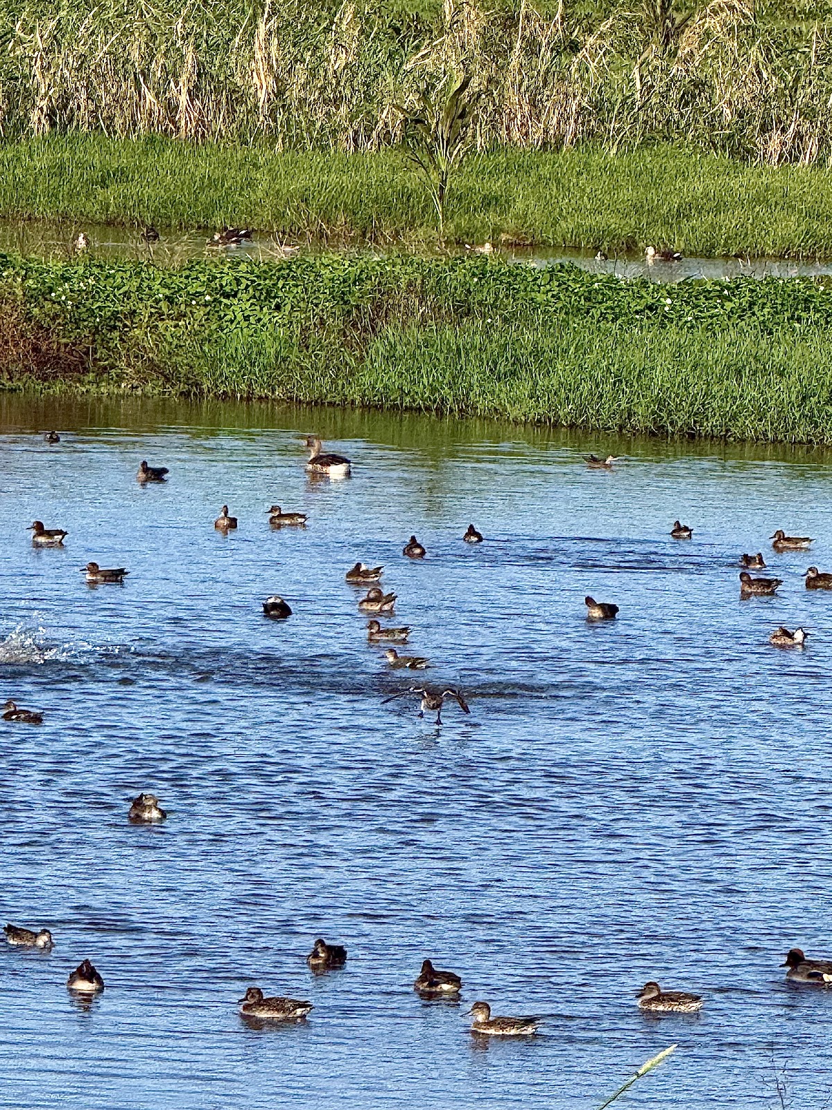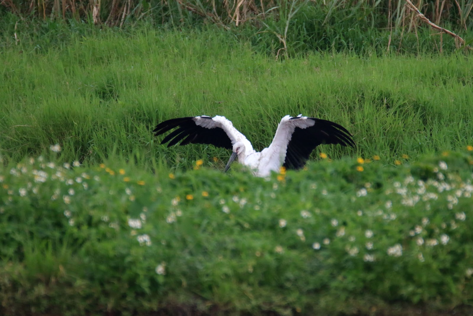 前往金山老街時,偶然經過一處沿路架設一堆大砲鏡頭的地方,好奇下來走走,才發現是一處可觀賞到丹頂鶴和一些水鳥的自然田園風光,稍稍可惜的是,身邊沒有望遠鏡和大砲鏡頭,只能用手機捕捉可愛水鳥們的身影。
