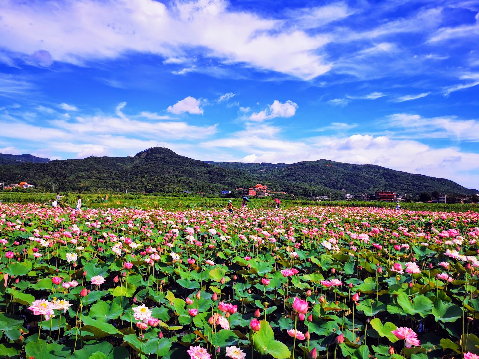 這一片牡丹蓮小花海,與遠方的青山構成一幅迷人風情畫。