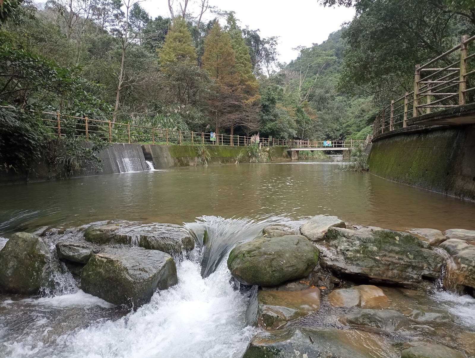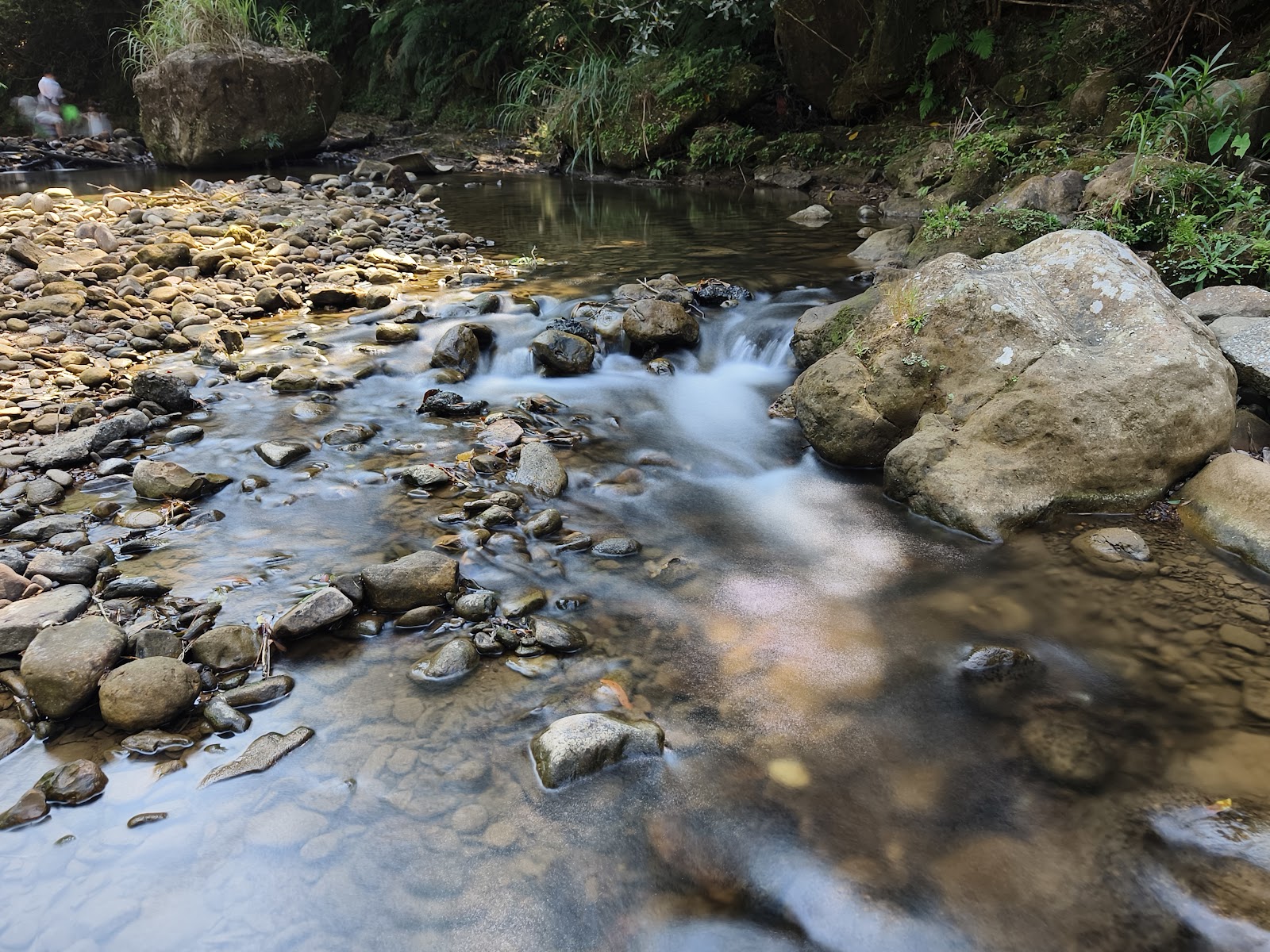 這裡不算大,但體驗非常好,因為人不多…、樹蔭剛好可以遮太陽。因為水不深,小朋友在這邊相對安全、站在岸邊就可以看到水下悠游的魚,提醒帶防蚊噴液、溯溪鞋。