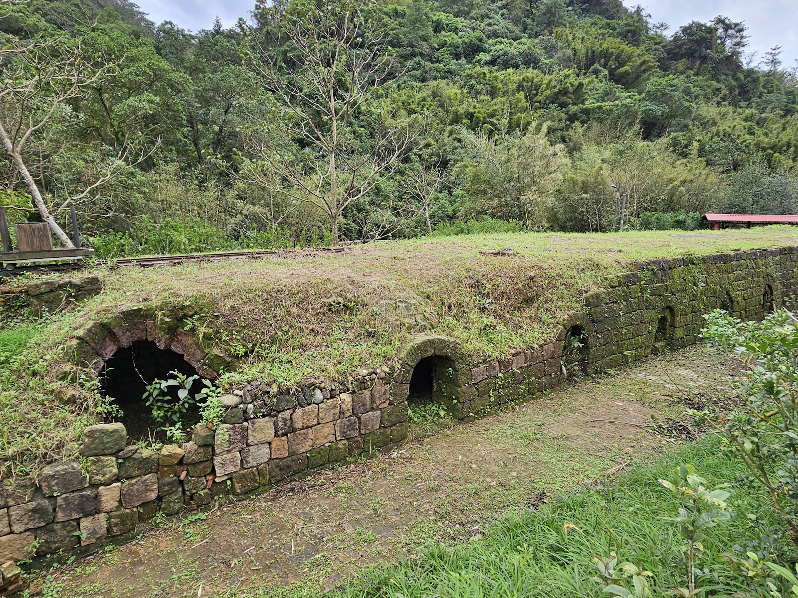 焦煤窯的遺跡,現場留有窯和輸送軌道的建築物,現場沒有太多解說內容,不過看旁邊有窯烤料理的設備,假日應該是有導覽活動之類的
