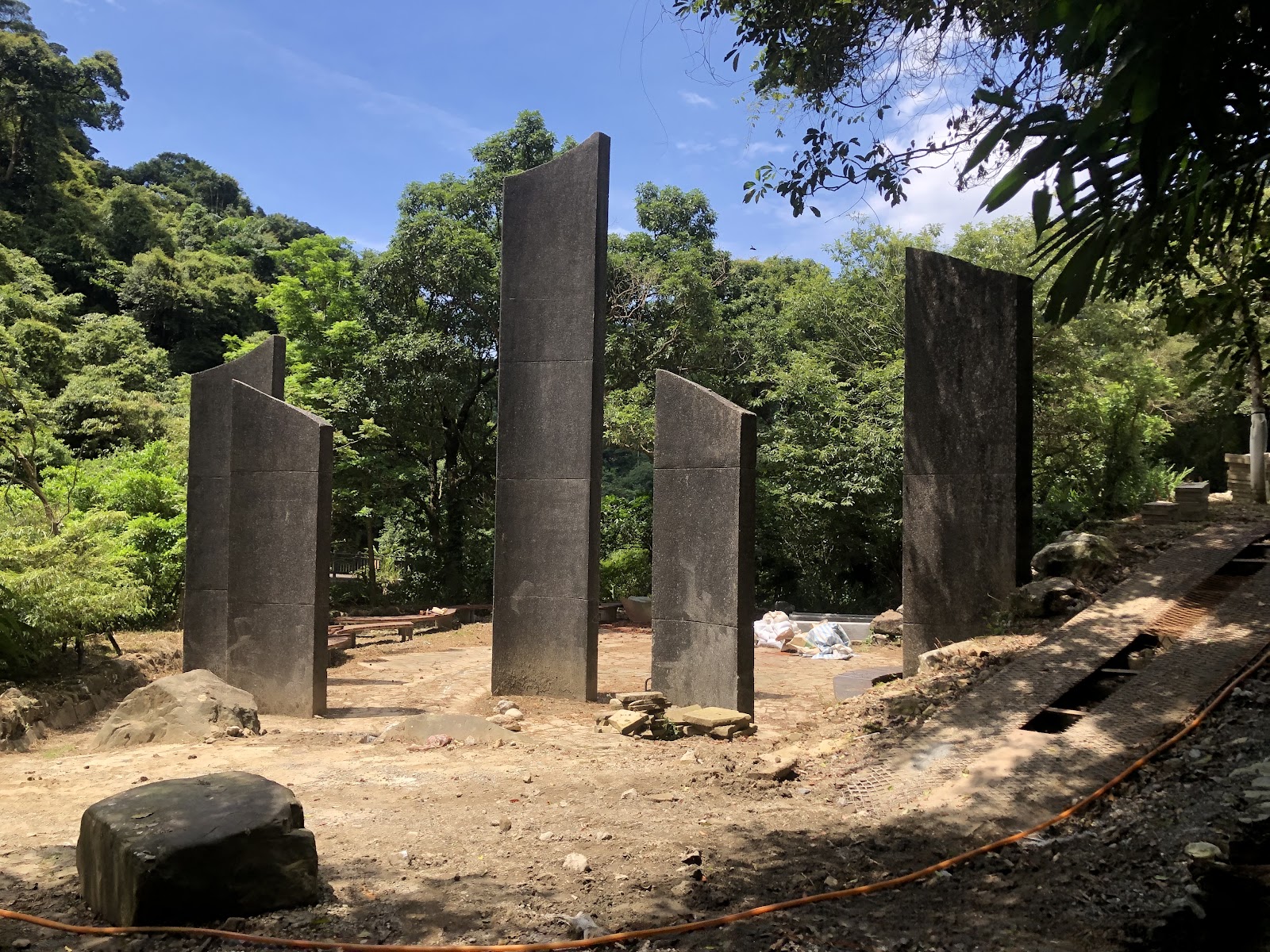 約五年未見的暖東峽谷.園區內重新整理過後.環境變得有點不一樣耶!有點坡度的步道較好走..走至百年土地公廟.沿途有溪流小橋流水.綠意盎然..涼亭旁的懸崖峭壁....平常日來沒有看見有販賣食物商品..免門票.有停車場洗手間....