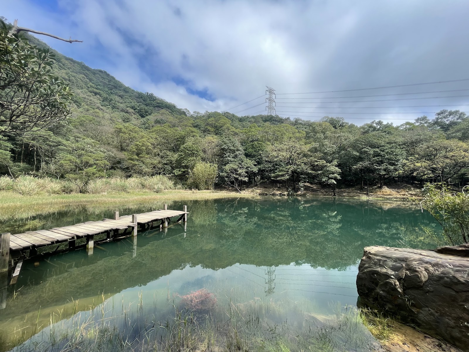 人不多,登山步道走到上面有不少大岩石,可以看景,夢湖很美! 適合週末去走走爬爬小山