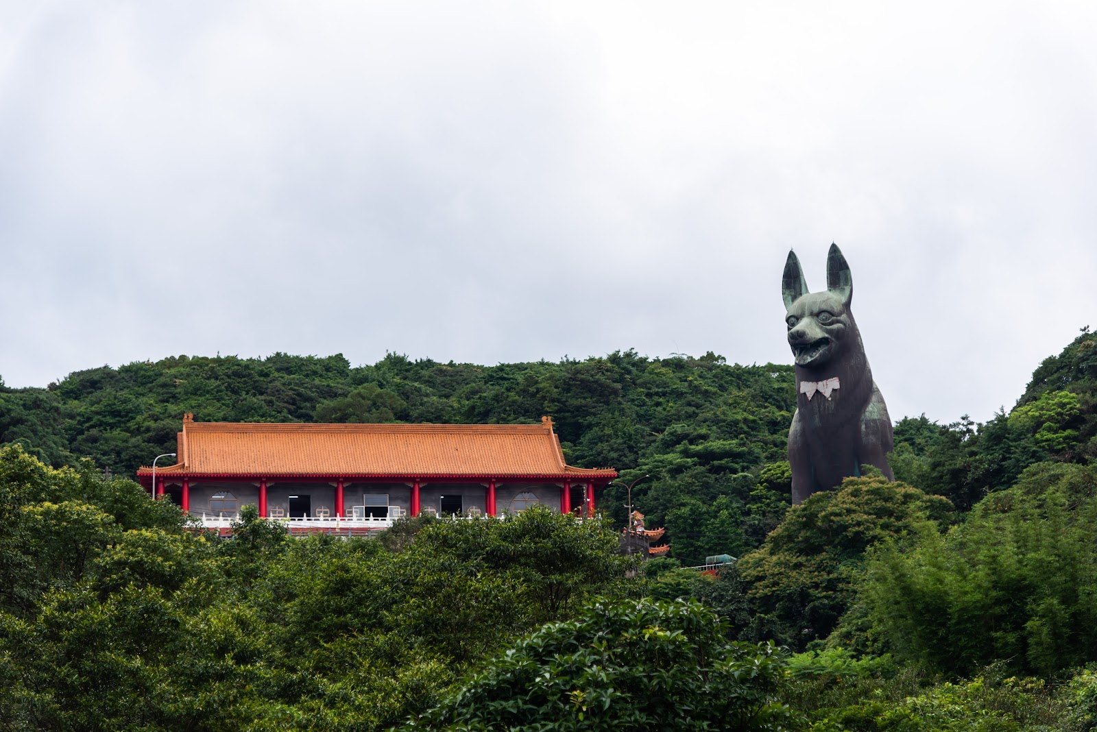 「巨無霸銅狗」30公尺高的體型聳立於廟旁,氣勢雄壯、霸氣無比,遊玩石門時,除了品嚐肉粽外,也不妨來這走走看看、跟超大狗狗拍照紀念。