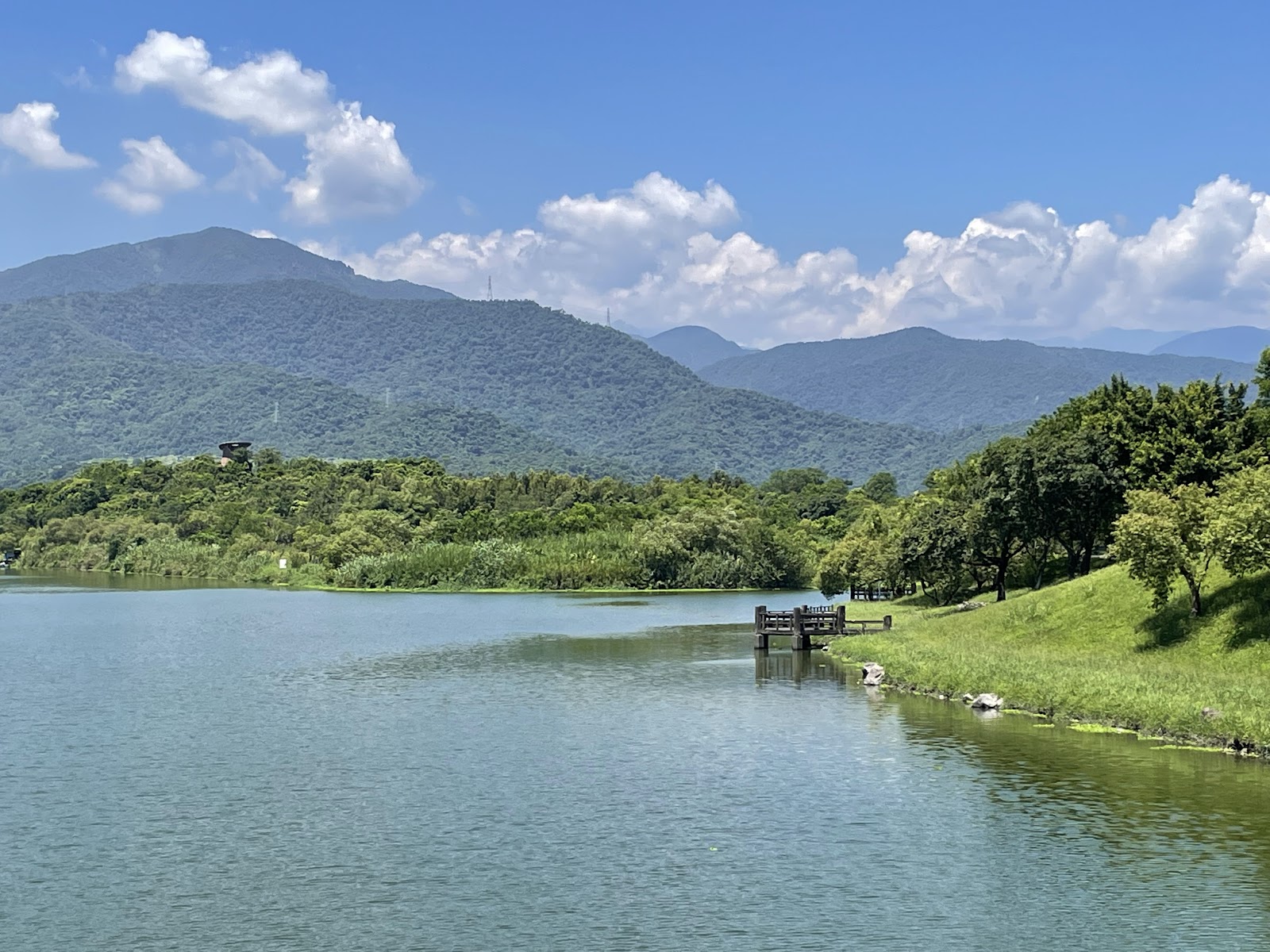冬山河河面寬濶,重重遠山相襯,一幅幅美麗的山水美景,穿插幾座各有特色的跨河橋樑,也是景點之一。