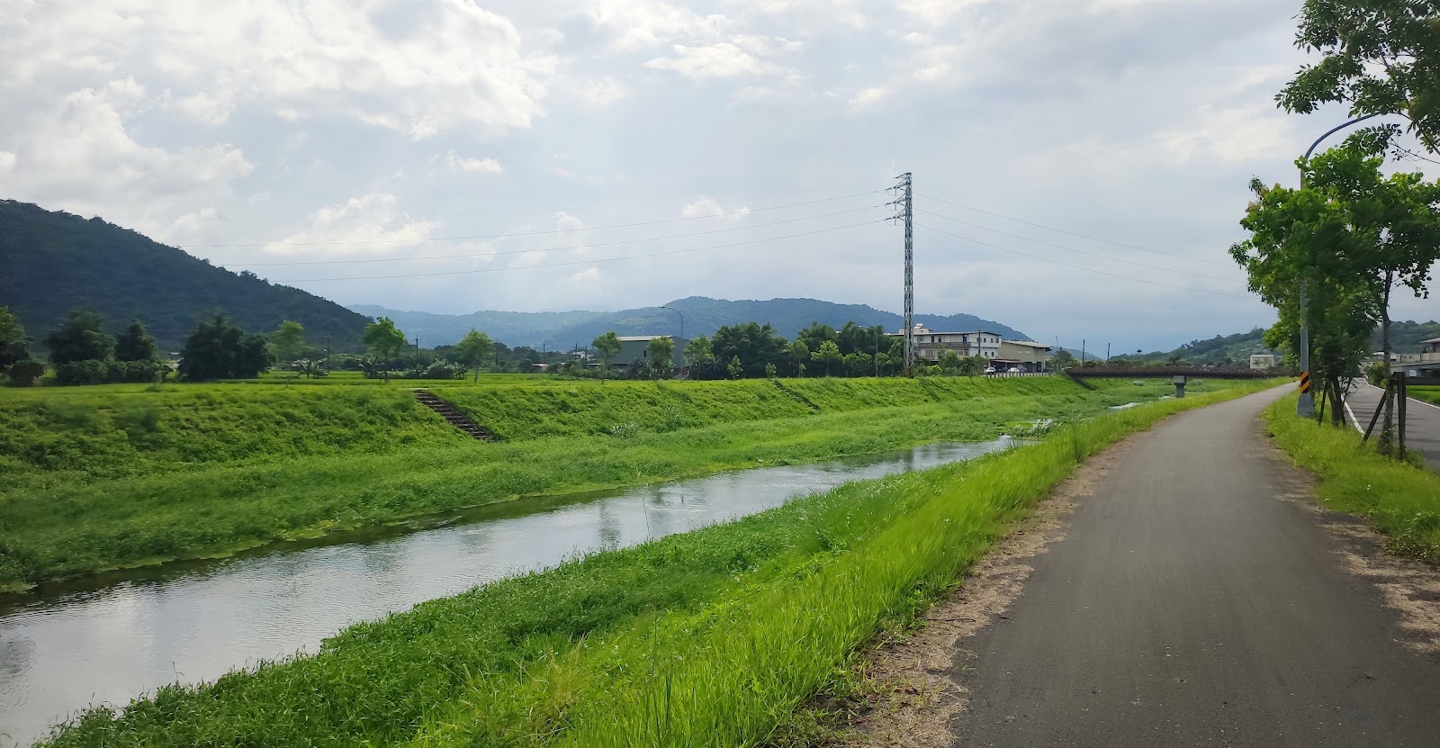 從( 鼻頭橋)往( 羅東運動公園)騎行(溪南環線自行車道)一路風光明媚,尤其左側群山連綿起伏,極美