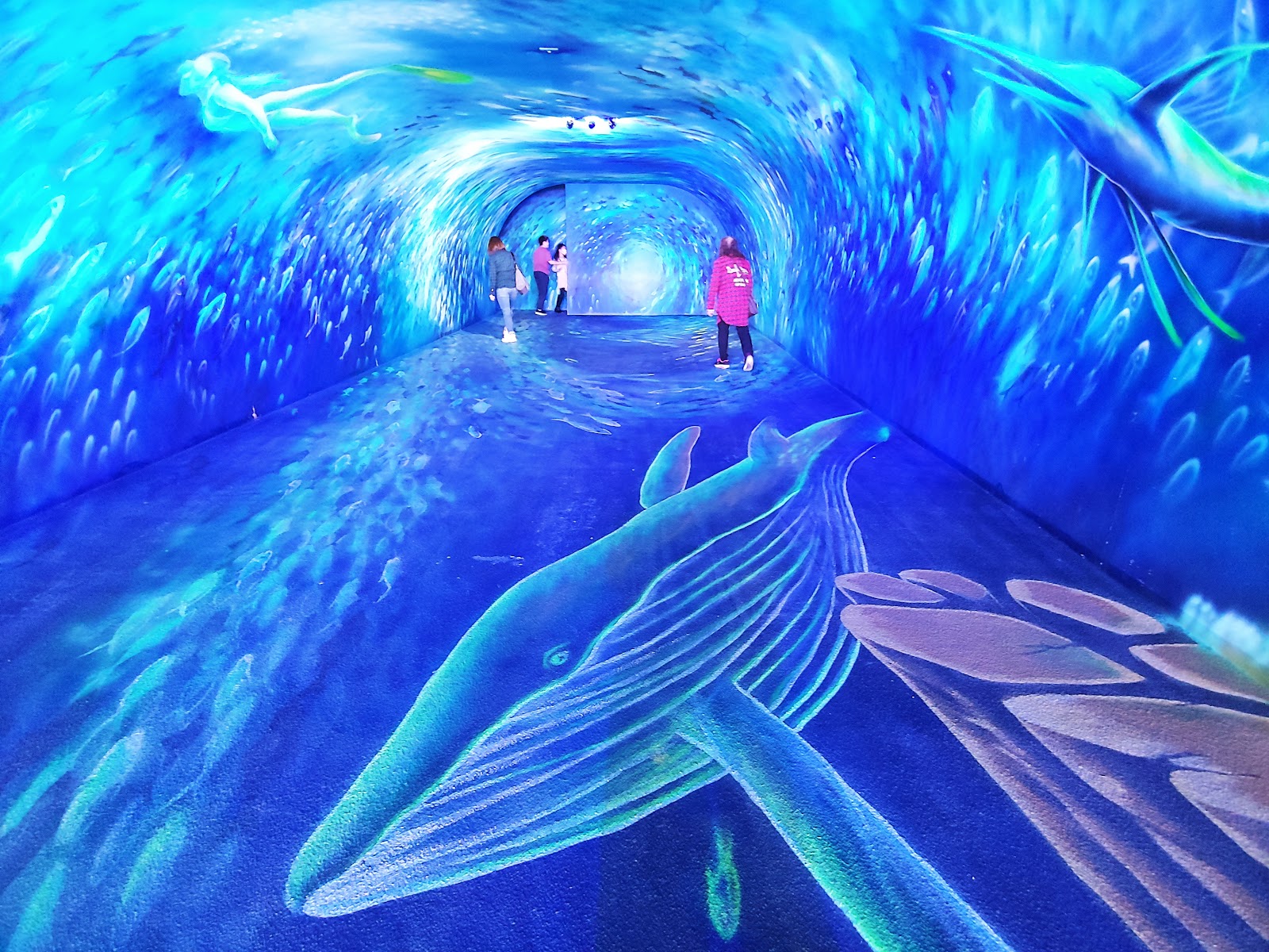 • 有一條 360 度擬真 3D 立體「魚龍捲隧道」,是由 3D 幻視藝術大師圖龍設計。