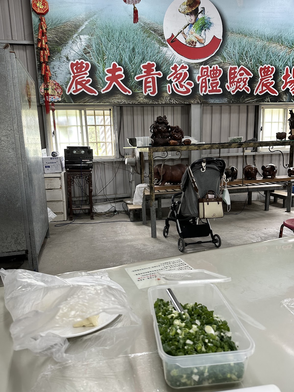 被朋友推薦來宜蘭可以帶孩子去農夫青蔥體驗農場,因為是平日的關係停車的地方很空曠,到櫃檯繳好報名費後就直接去做蔥餅,教學老師非常的有趣,但是我家孩子有聽也有懂,但做得不太對把麵皮擀的太薄,老師也會親切地過來教學怎麼補救,避免蔥掉出來。