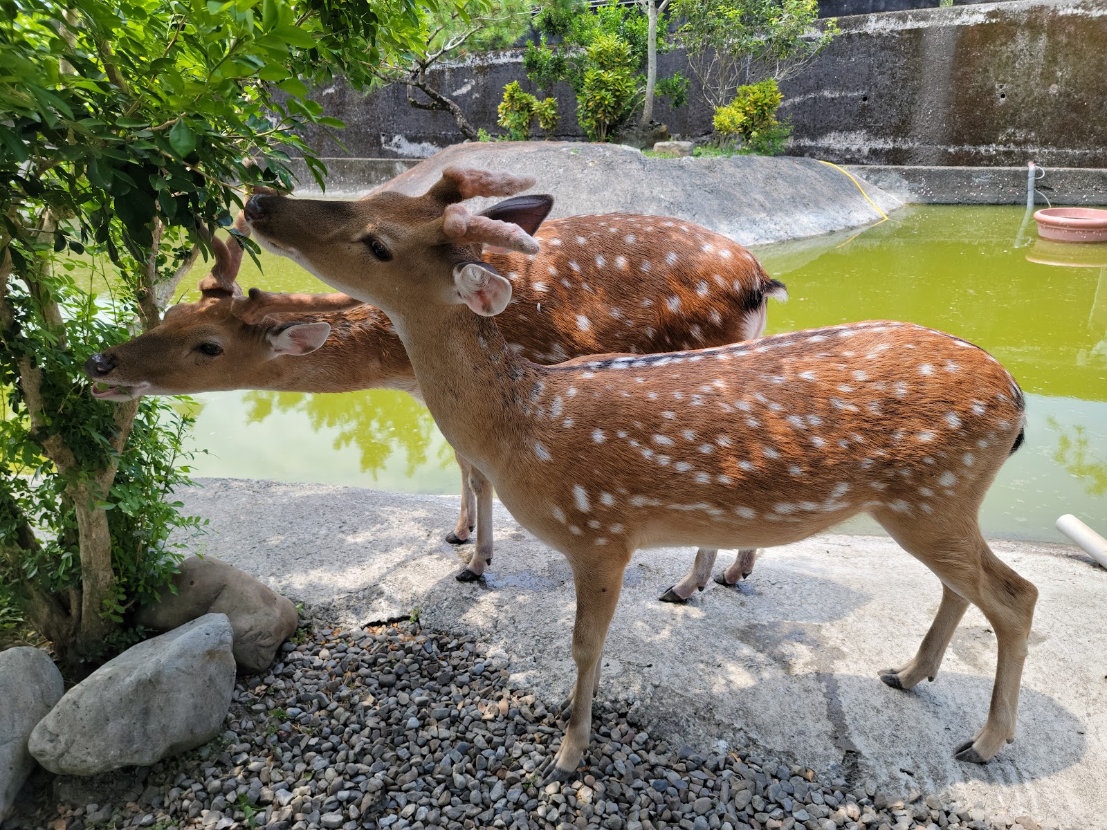 農場裡也有很多動物、有很多羊羊、鹿、豬豬、還有狐蒙跟浣熊!導覽的大哥也很親切、給我們好大一把飼料!一進去園區像巨星一樣被眾羊追逐😍😍