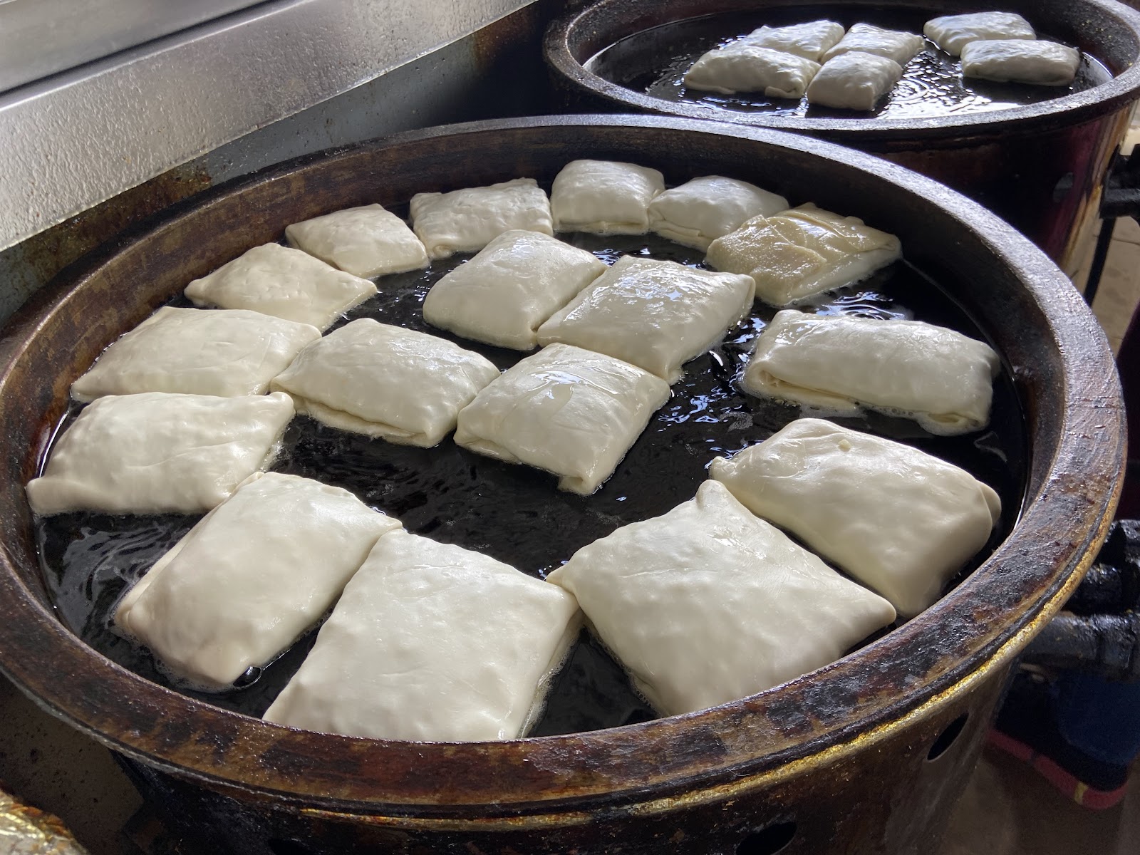 製作蔥餅,有介紹麵糰的製作流程。此方式也完全滿足客人想多帶蔥的概念,只有能自己把麵糰擀的又薄又大,就能包好包滿。
