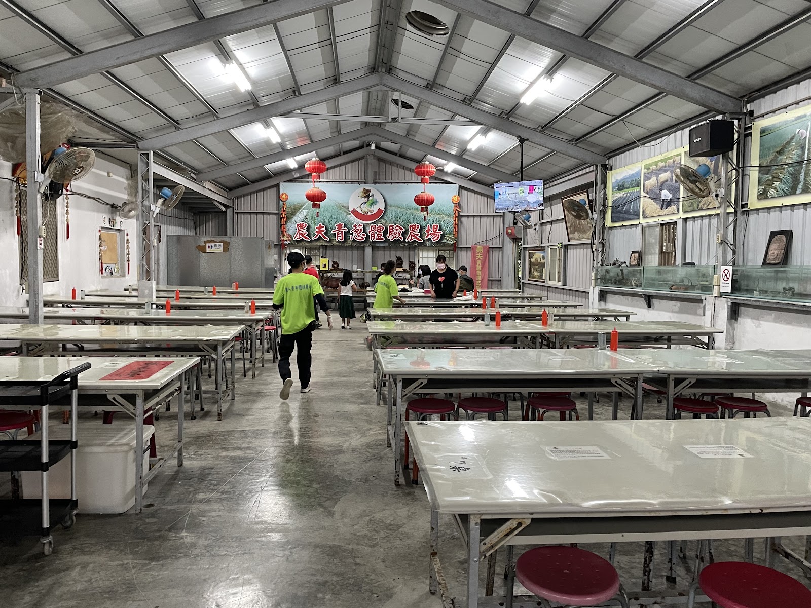 佈置很多灑水設備和霧化設備,讓炎熱的夏天稍微涼爽一點,蔥油餅DIY教室是開放空間,如果有團客在旁邊洗蔥就會稍微吵雜一點,一場大概20分鐘左右,主要是在把麵團桿開成長方形狀,再放蔥,包起來就完成,剩下的時間都在等煎台煎完,建議做完趕快送去煎台才不用等太久,旁邊另外有個小小的農場裡面很多侏儒羊和一些小動物,需要另外付費才能進入,會提供一小盆飼料,沒進去餵食的話在外圍就能欣賞也很不錯,還有可愛的狐蒙,拔蔥的話在後門有蔥田種得不錯,會有工作人員帶路去拔,還有一間小小的販賣部,旁邊提供桌椅給坐完蔥油餅的客人可以在那邊坐著吃,邊吃邊欣賞農場裡的小動物們很是愜意,整體而言只要沒遇到團體客,會是很不錯的地方