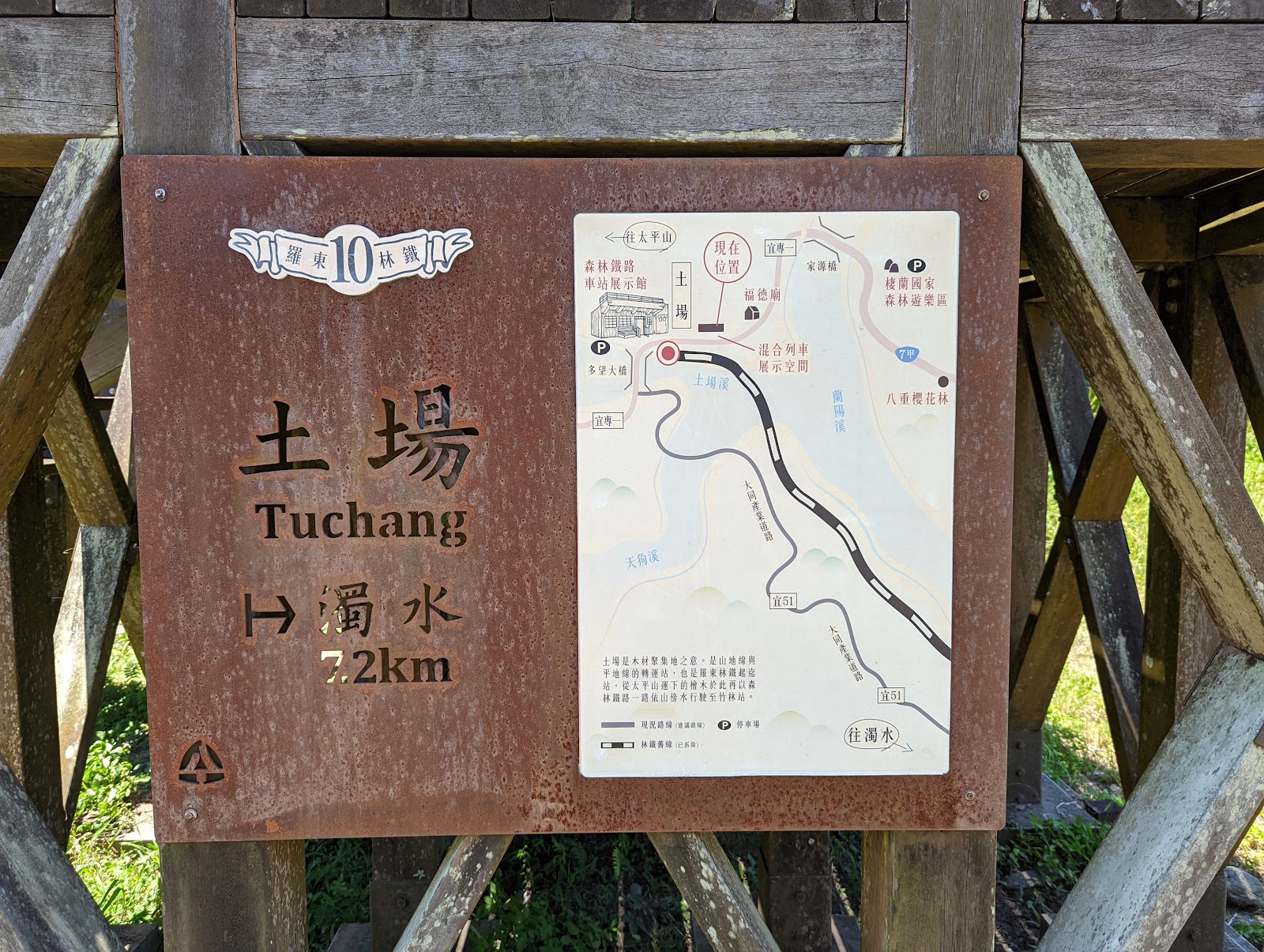 上明池森林遊樂區之前,可以先來拜訪的地方,國小課本上提的五分仔小火車與土場車站,有詳細的看板說明與介紹,沿途車流量不多,四周環山風景優美,有步道與站台可供散步登高,天氣晴朗可以遠眺蘭陽溪河床,景色怡人令人心曠神怡,山間涼風徐徐,不至於太熱,挺適合停下暫歇。