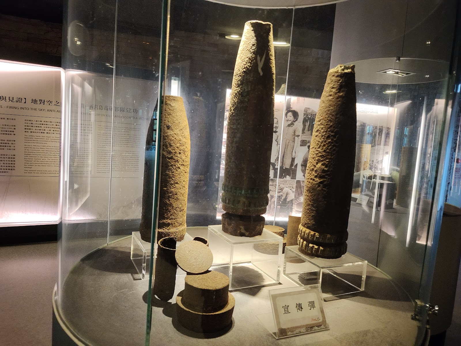 軍用品展示區有許多歷史文物,運用時間軸加上文字敘述及影像來重回戰地歷史,最尾端還有休息區能看到螺蚌山,非常推薦!