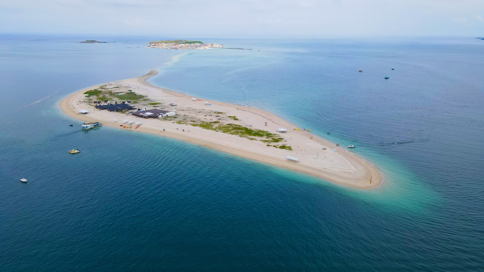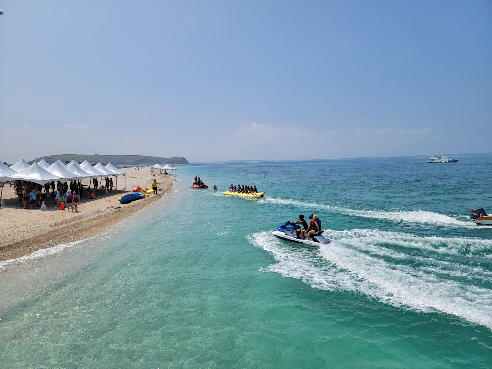 因為颱風生出的一塊沙灘島,參加KKday的東海超值行程,上午水上活動玩到飽,還好颱風剛走,沒有太陽,天氣涼爽,小孩很愛。有七種設施,排隊就能玩。