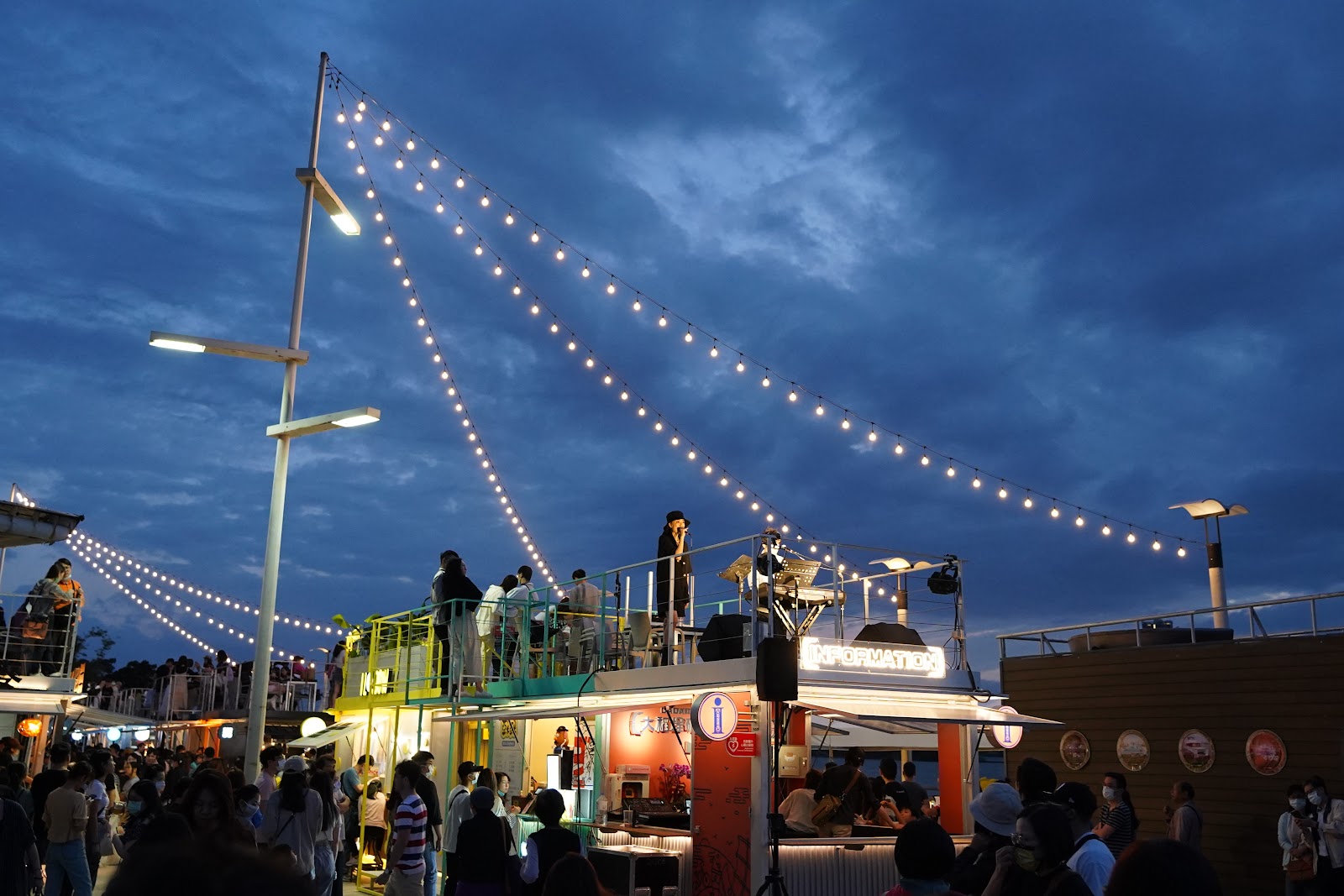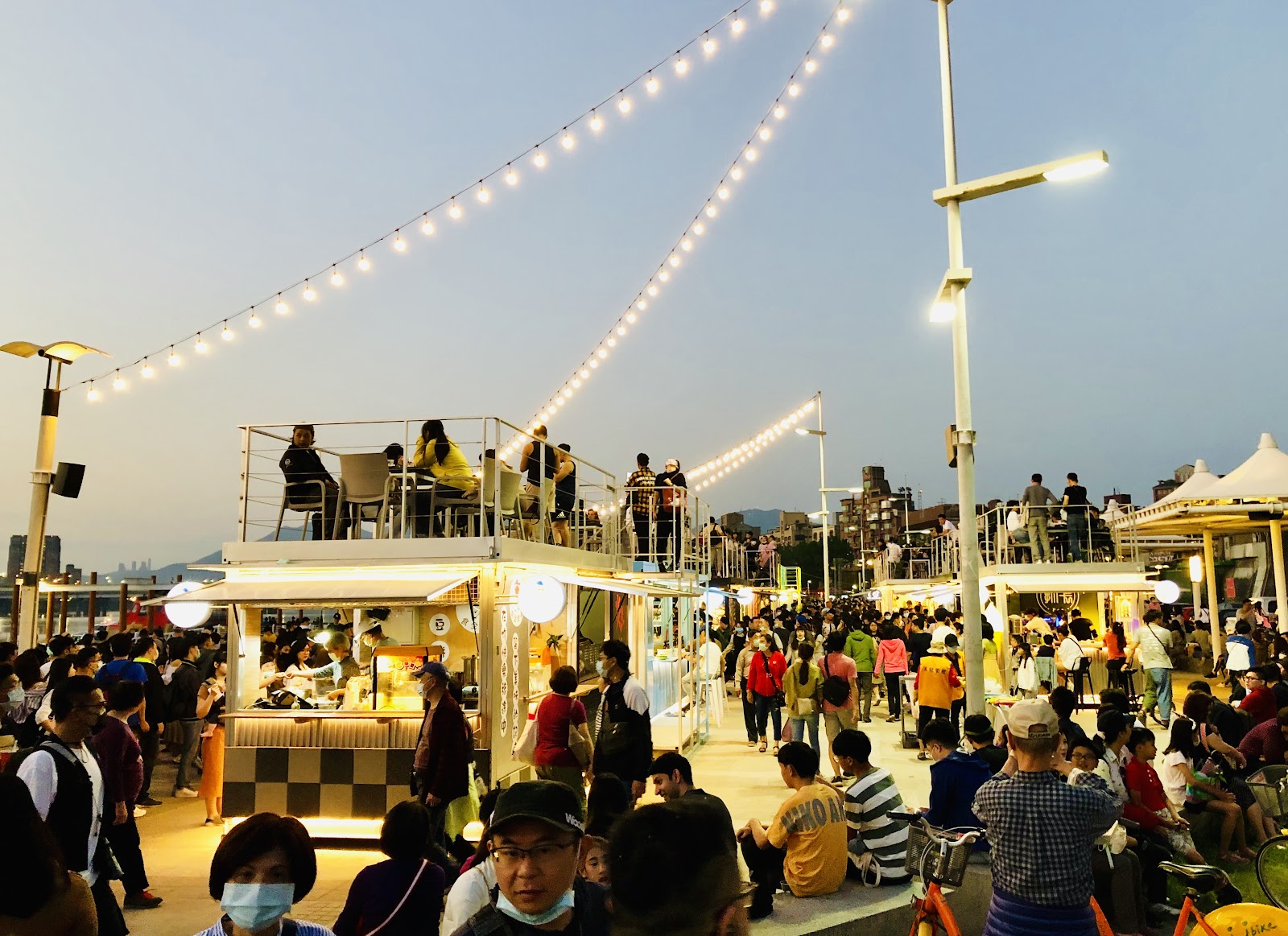 台北市最熱鬧的貨櫃碼頭,裡面有好喝的酒,還有很多好吃的小吃,旁邊還有遊艇碼頭可以坐船去欣賞淡水河,每年8月都會舉辦煙火秀非常值得去看,基本上每年我都會過去看,不過真的要看煙火秀真的是要事先提早去不然會人擠人