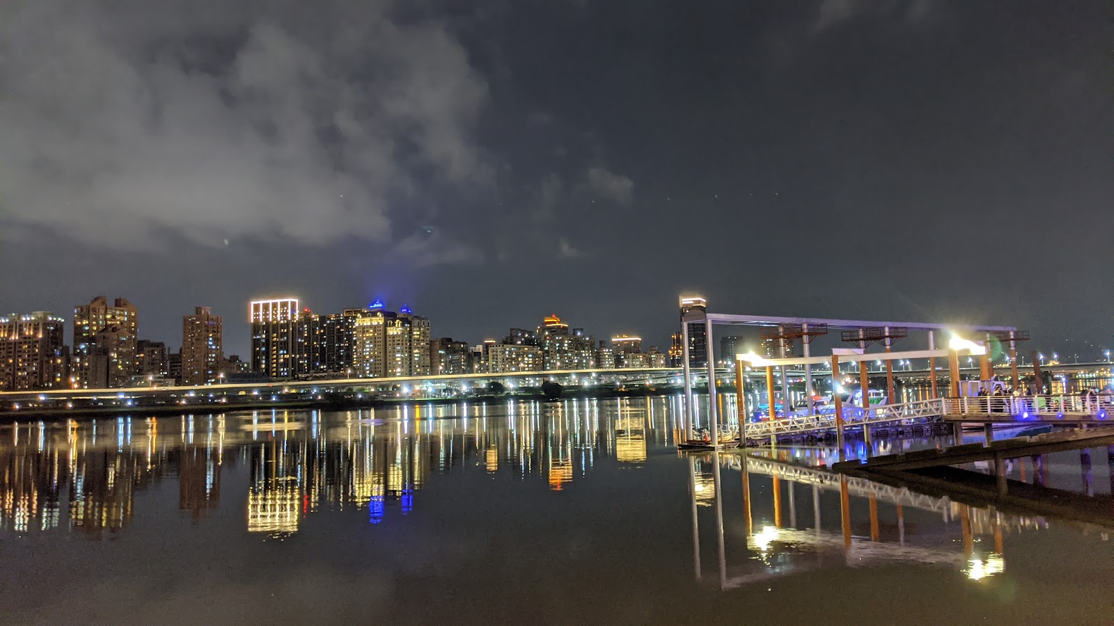 傍晚黃昏時的氣氛非常悠閒 天色漸暗後點燈更有氣氛 樓上的位置是混坐 但樓下的座位區就有分店家 需要低消才能坐 可以遠眺橋上的車輛還有飛機起降 冬天或是夏天的晚上來比較適合 只是價位偏高 可以從迪化街買一些東西配著啤酒吃 離迪化街34分鐘路程 可以順道探訪