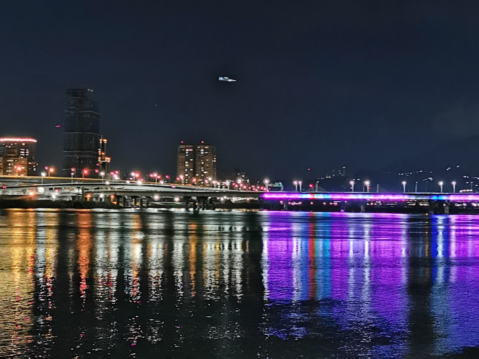 今年很高興也來參加大稻埕煙火節最盛大的結尾場次,這次家人臨時決定直衝河岸水門看近距離煙火。我們抵達五號水門時大約已經19:50左右,距離煙火施放時間已剩下10分鐘不到,那時水門口已人滿為患,經交管人員告知不要再擠進水門,建議我們可以往3號水門移動,那裡還可以進入河岸岸邊。所以我們走動的很快,最後甚至跑起來,深怕走太慢時間到煙火就開始了。好險最後壓線趕到,雖然因為時間關係,在進入水門後沒多久就開始施放煙火,沒能到視野最好的前排觀賞,但這樣的距離也足夠震撼,煙火的美麗也夠讓人歎為觀止了。後來結束後紛紛看到網路上有視野好的煙火影片,才發現確實被擋住很多部分沒看到全貌,或許這樣也可以保留一點驚喜和期待,期待下次等待煙火的美好。