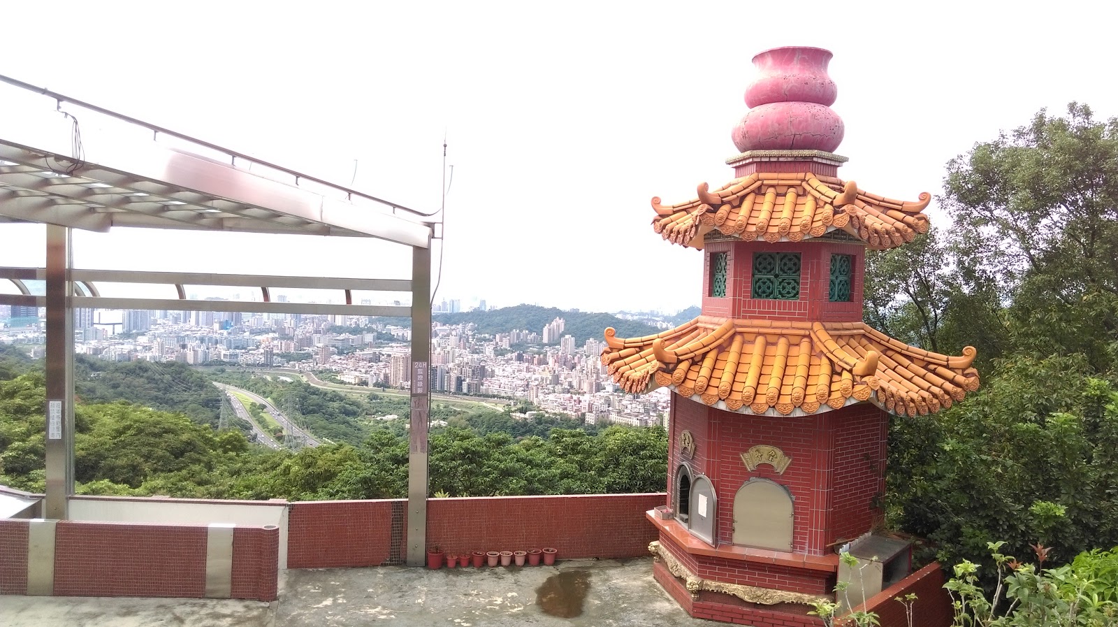視野極佳的寺廟,好天氣時可展望大棟山、觀音山、陽明山(見照片5)、南港山等,除展望好外,此處也有供應溫熱茶水(需自備茶杯水壺),有廁所。