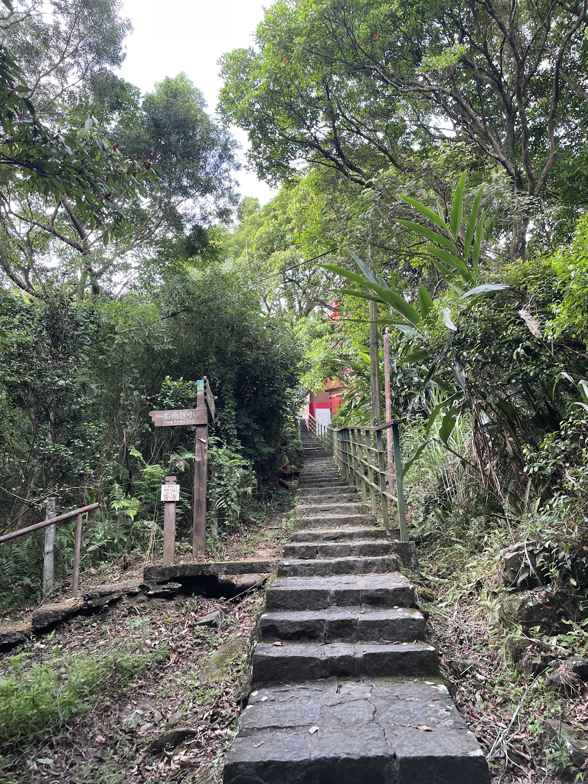 右側有石階上山,想來,已有數年沒走這山道了!這步道可抵木柵貓空樟山寺,算是「政大後山」路線。