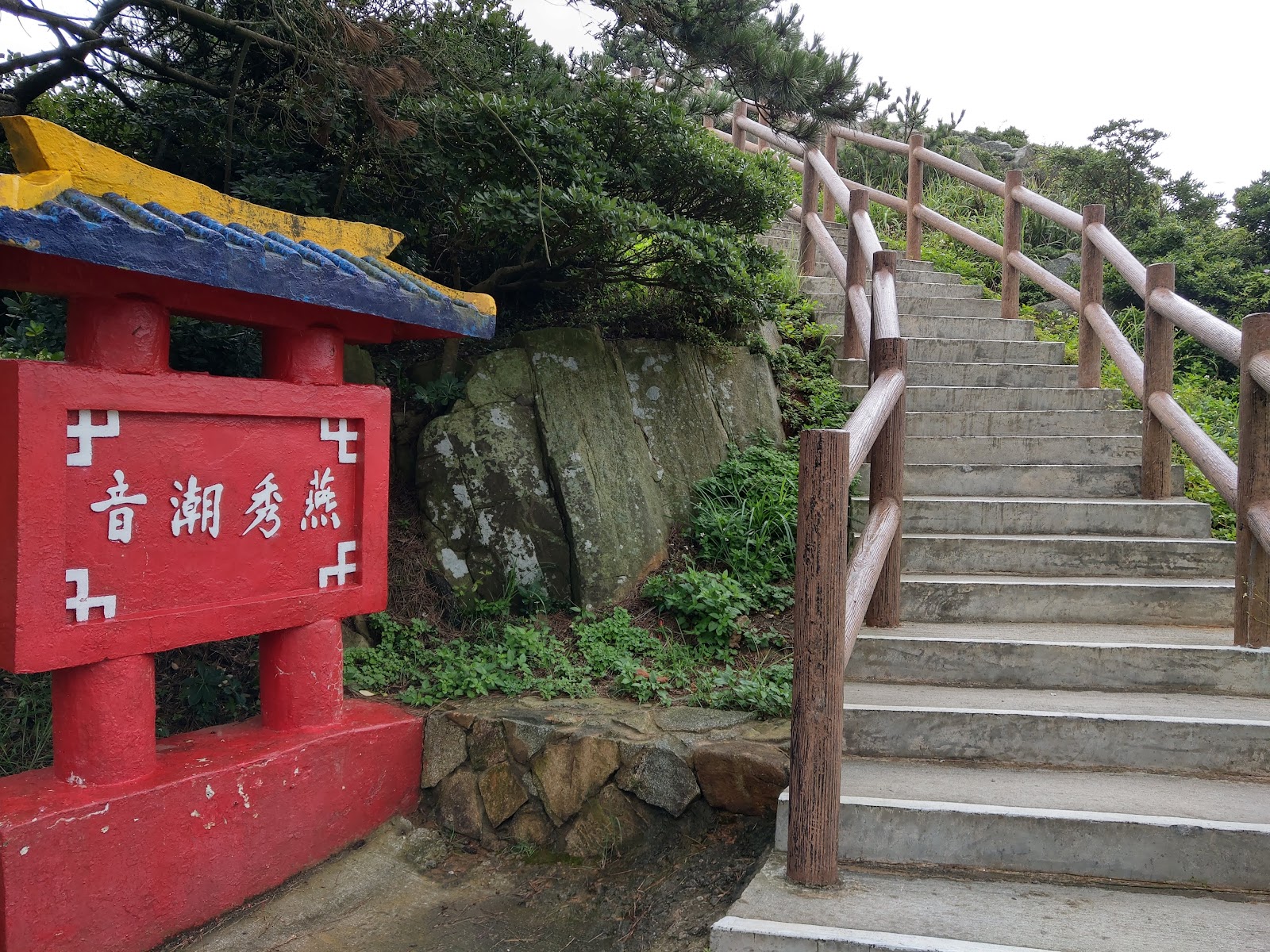 會經過一個營區但其實可以通過 機車會停在營區旁走步道上去 在「燕秀潮音」的地方往下看很壯觀 上去之後風景也不錯 步道就是一個口 所以往左或右都會通~