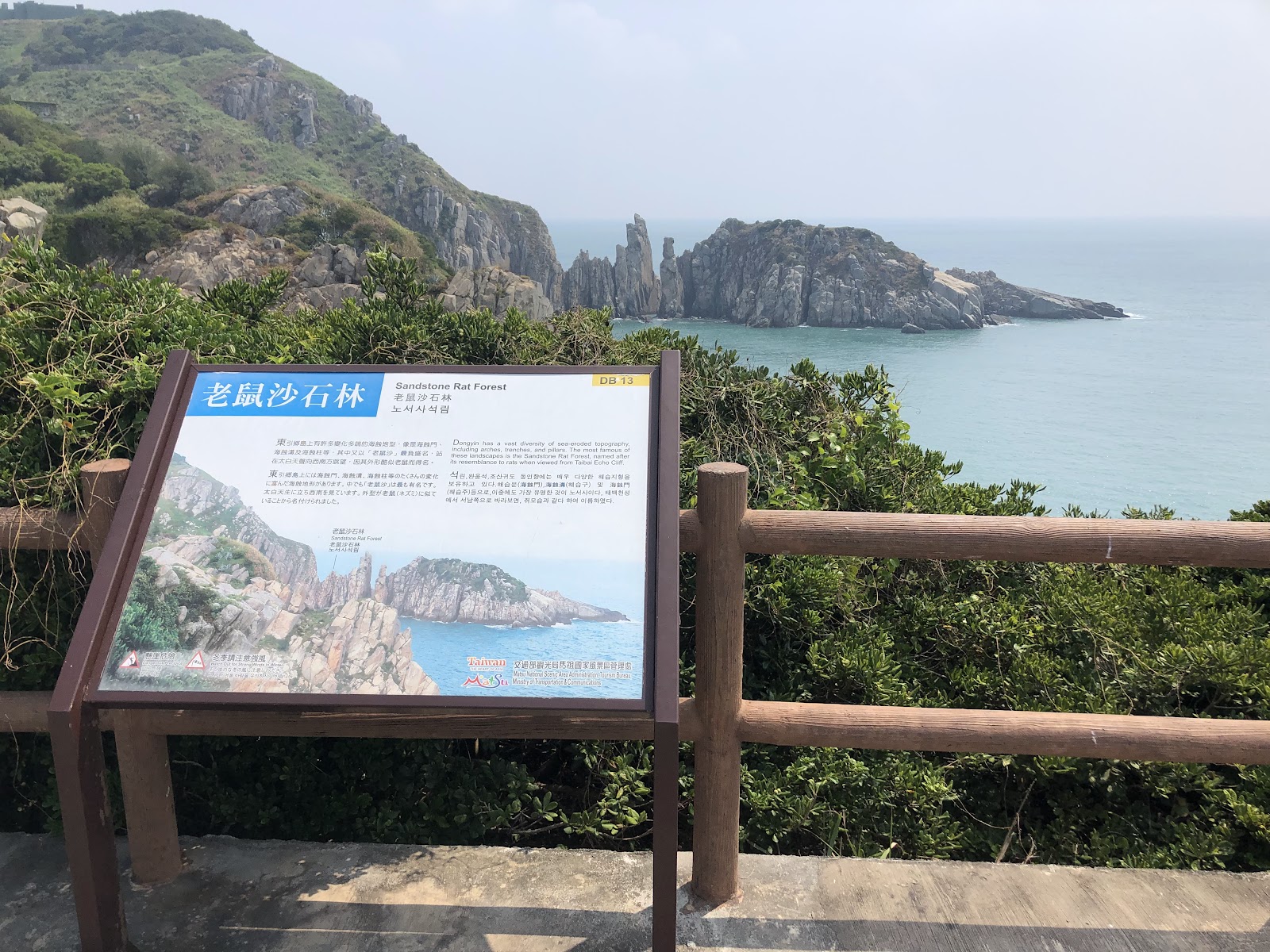 燕秀不好找,走中正路旁邊有一條巷子,有指標,騎到底右手邊有大石頭寫「燕秀」,前面是軍營,有很親切的阿兵哥對我們招手,示意可以進來,「燕秀」原名燕巢,東引海風強勁,燕子只能在山谷築巢,後來國軍進駐,常常實彈演習,讓燕子飽受驚嚇,就搬走了,此為典型的海蝕洞地形,海浪拍打岩洞,聲響迴盪谷中,故名「潮音」,由潮音亭、環谷步道往上走,可遠眺有金花銀燭美譽的「老鼠沙石林」,非常漂亮