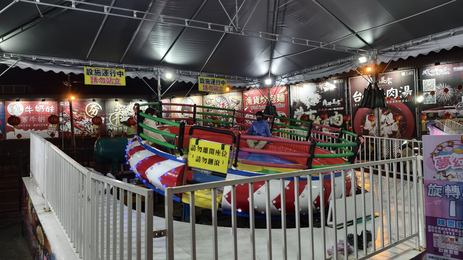 還有一攤丟遊戲球,小小孩只是坐上去椅子,大人表示他還小不會玩,老闆回嘴:你幹嘛坐…開門做生意天經地義,還真直白的不友善