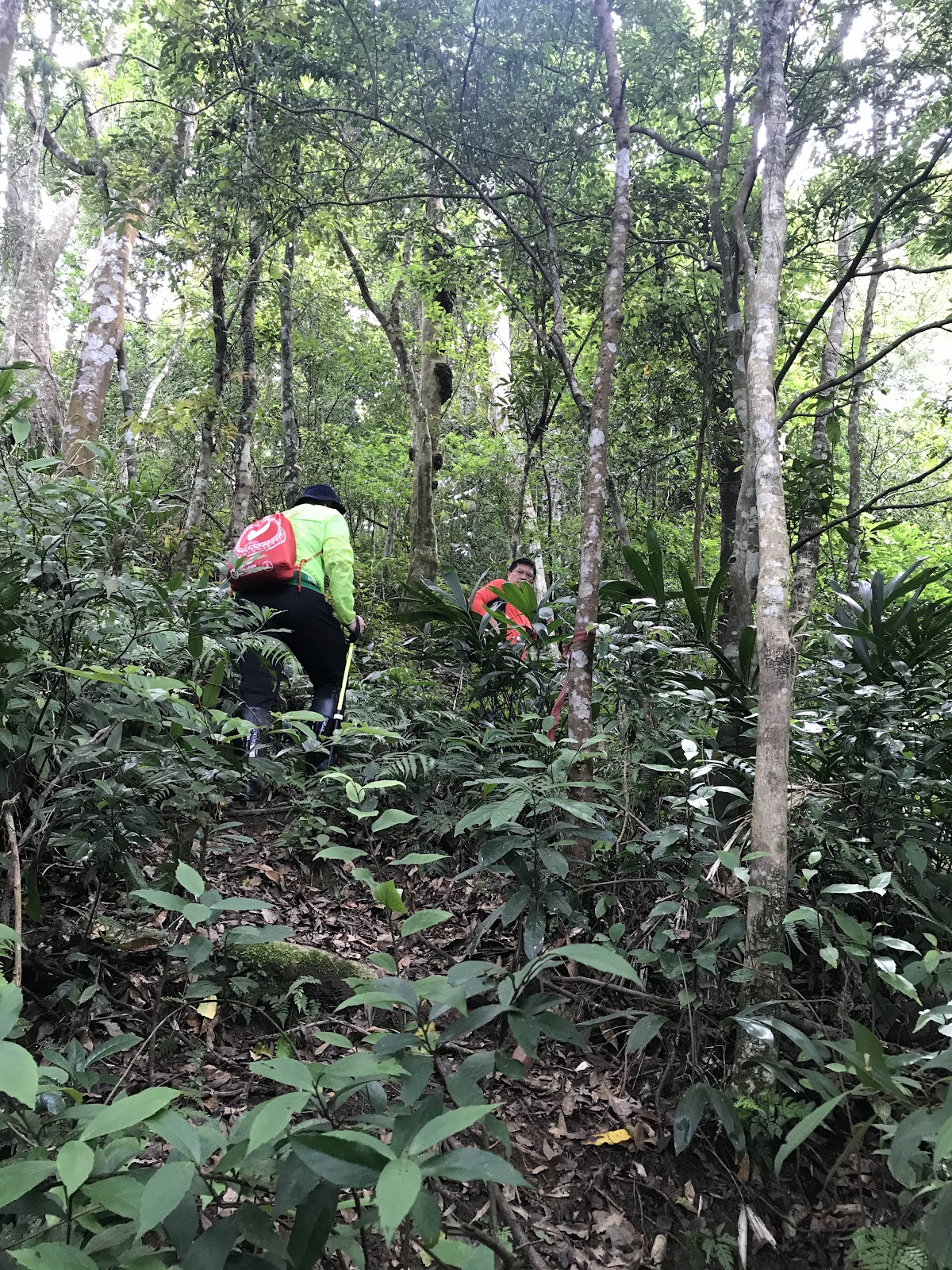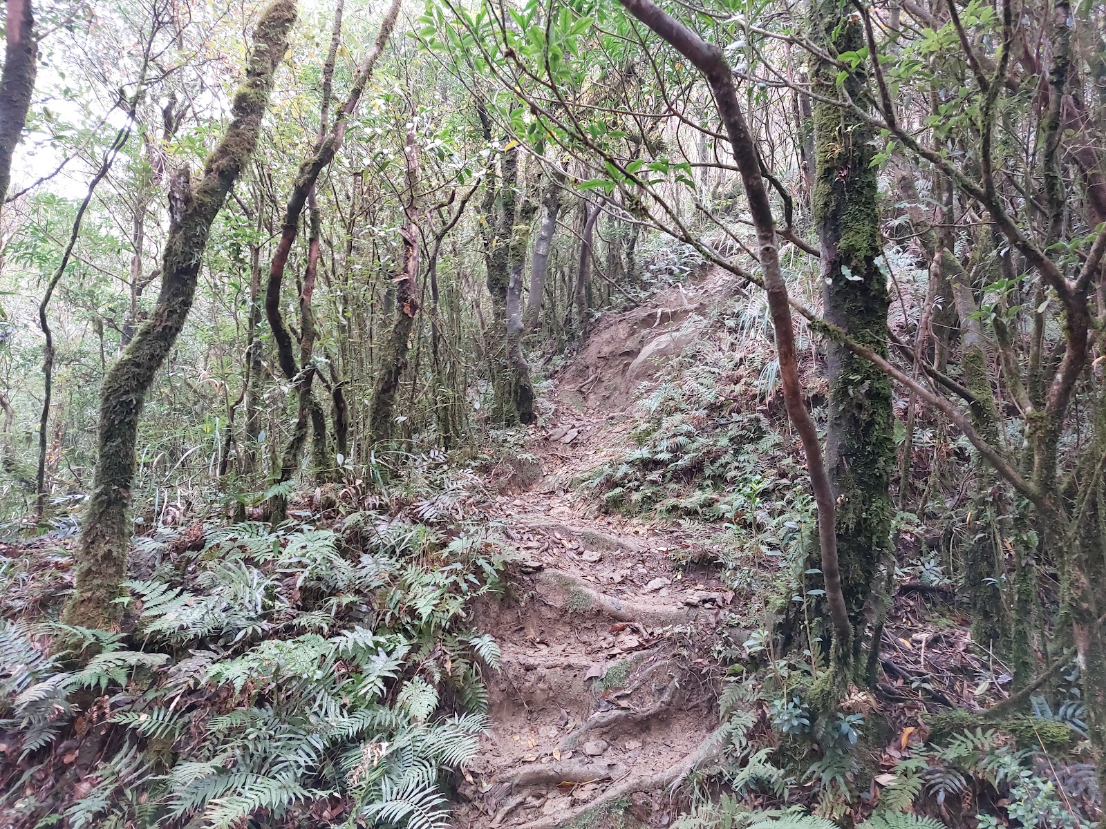 前一天沒有下雨的情況下山路還是蠻潮濕的,而且比較是陡的路徑,所以上下坡都要更加小心,路途中有壯觀的南插之星神木及被雷擊中已枯死神木可以欣賞,可惜在三角點週圍沒有景可以看