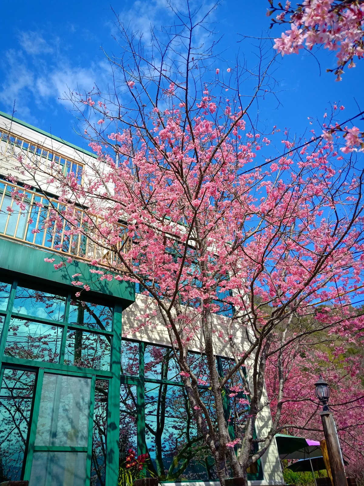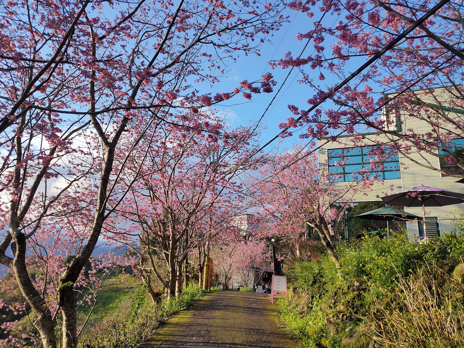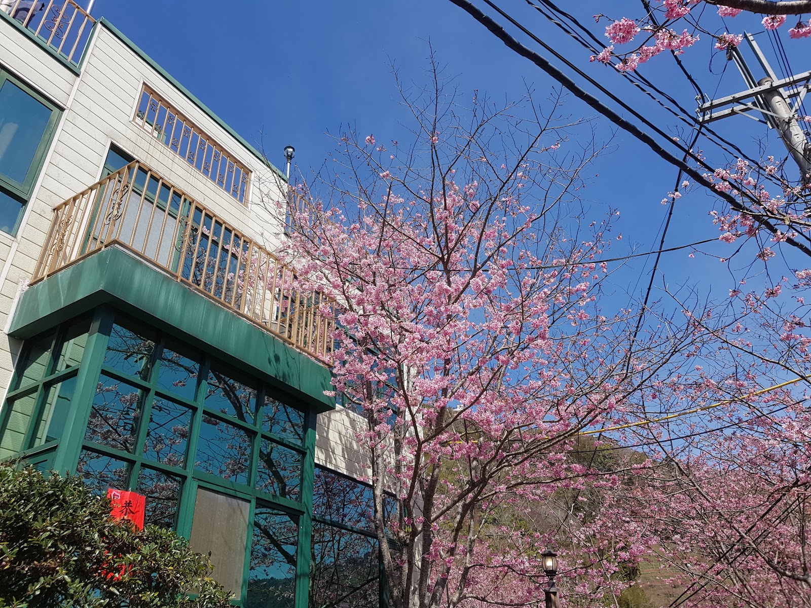 春來了,滿山的櫻花盛開、還有山坡水蜜桃樹林發嫩葉準備開花,大自然的美景令人心曠神怡。