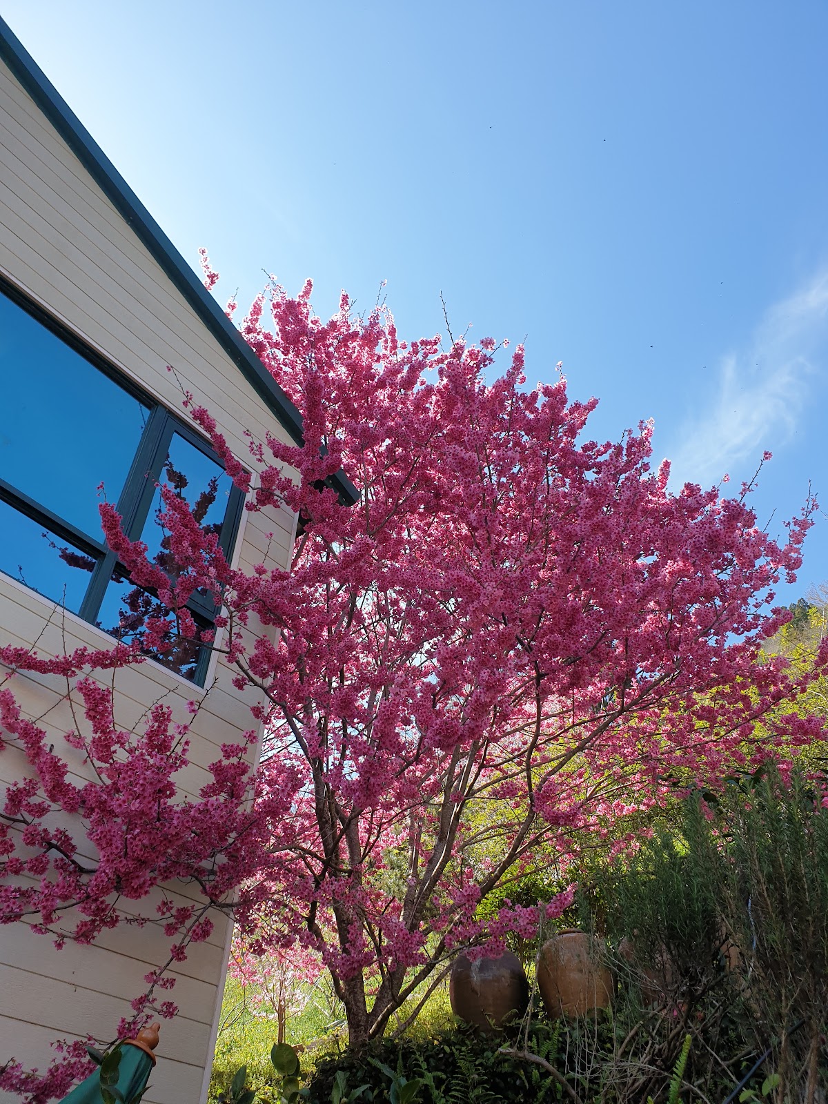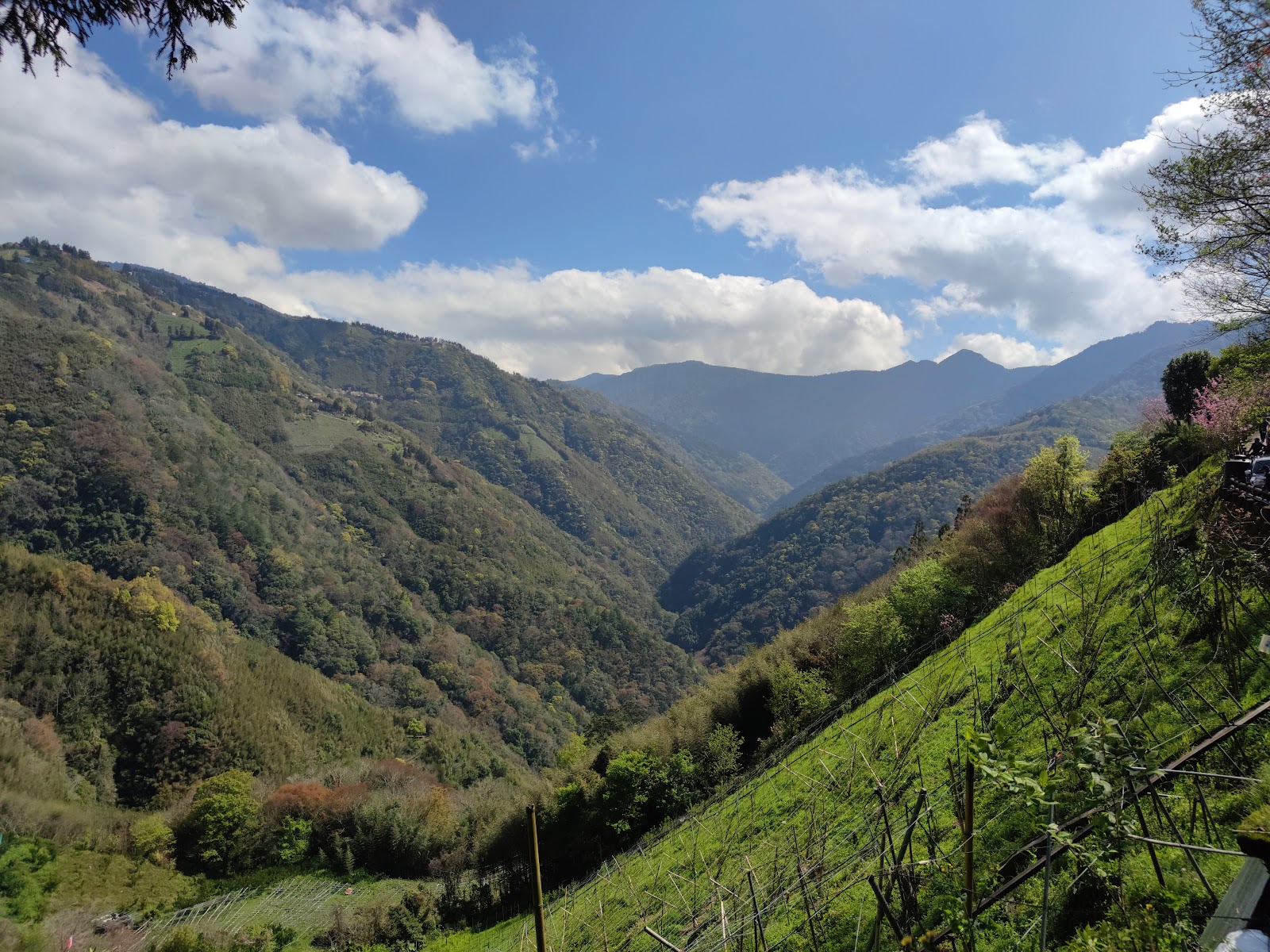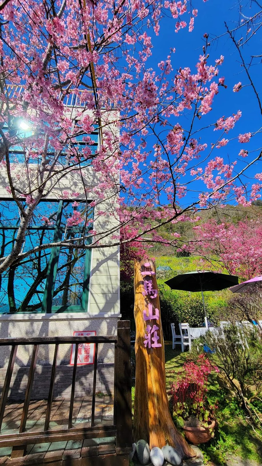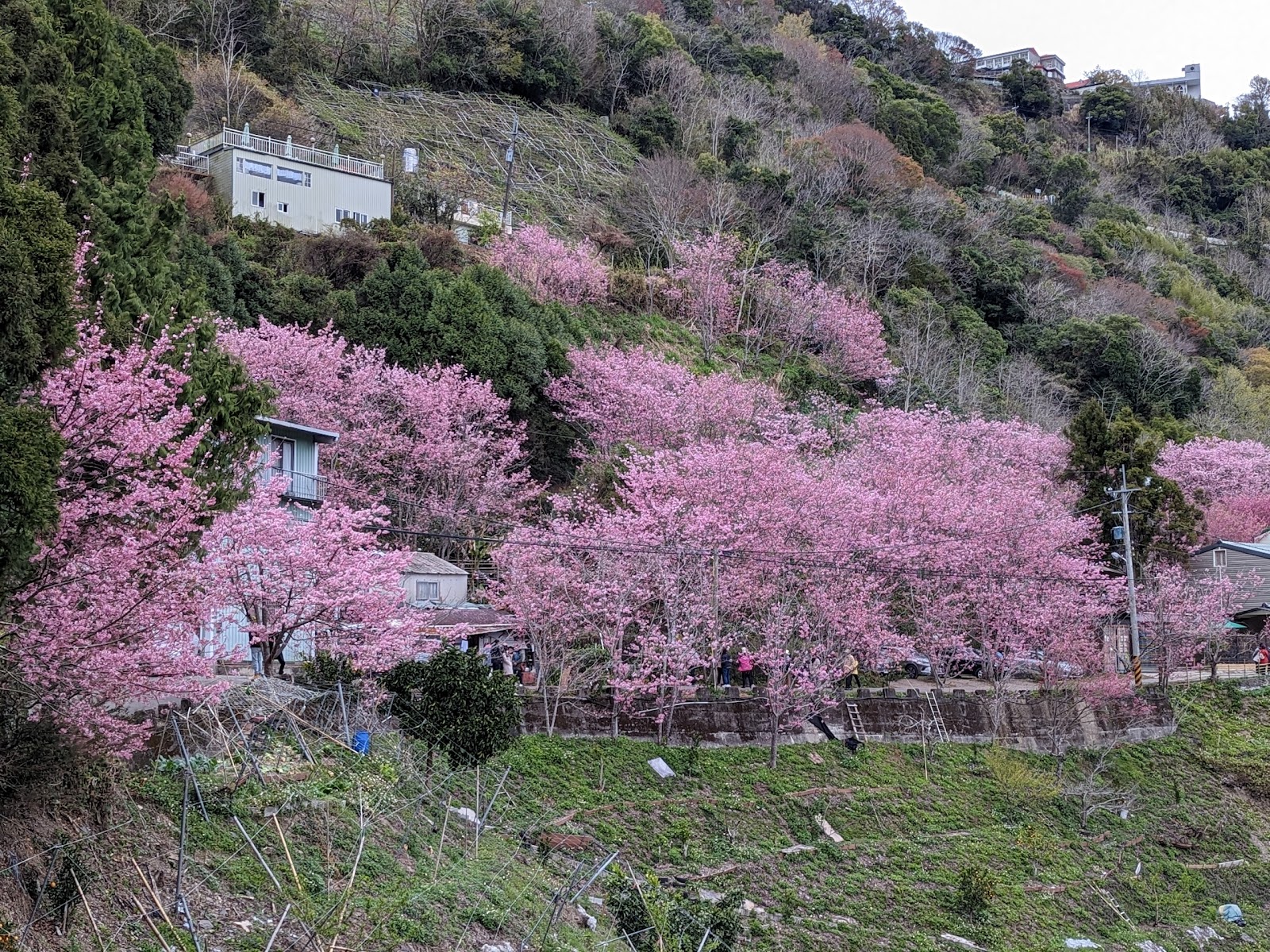 春來了,滿山的櫻花盛開、還有山坡水蜜桃樹林發嫩葉準備開花,大自然的美景令人心曠神怡。