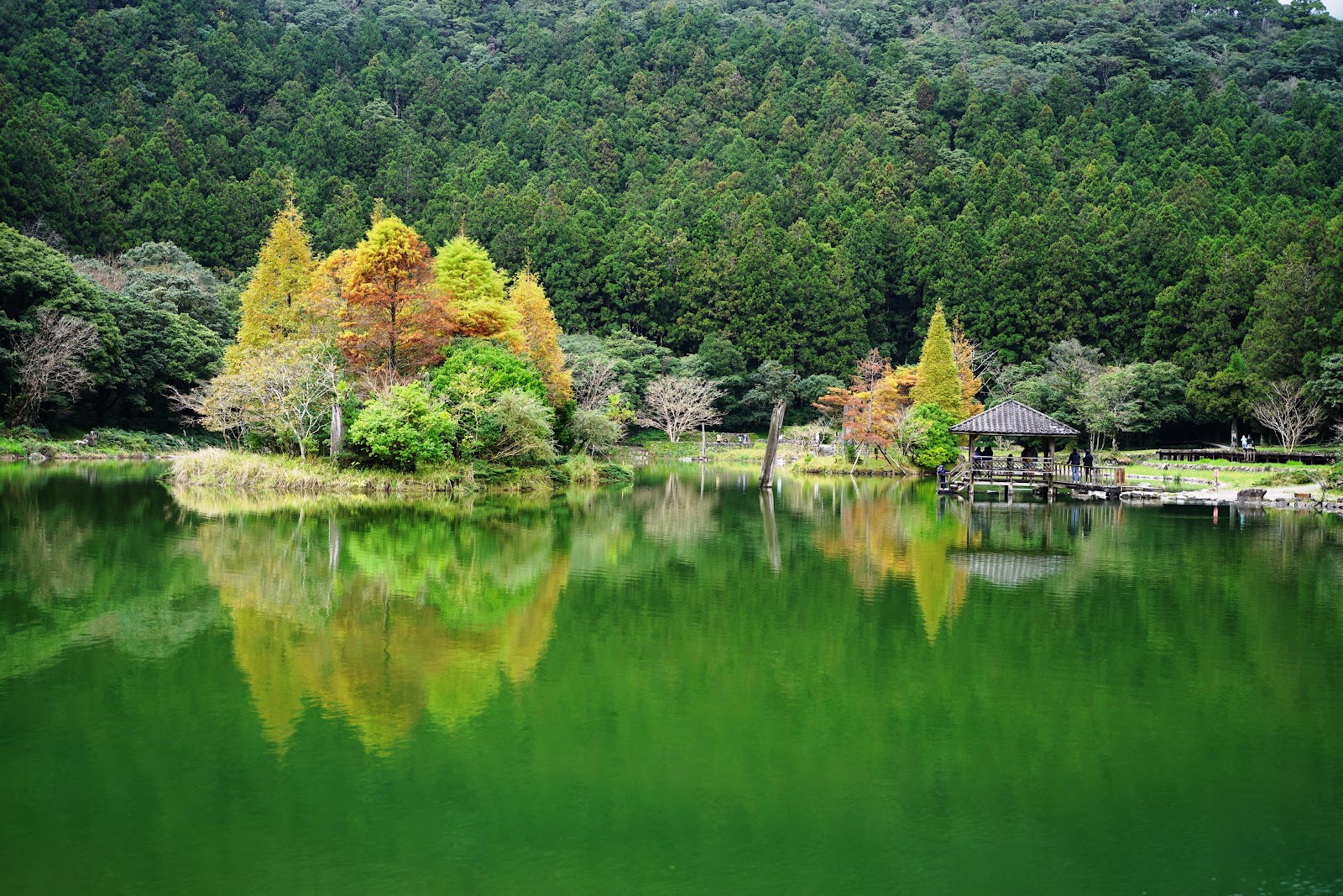 一年都處於多雨的時間,霧氣飄渺就像仙境一般,慢慢繞著池子散步可以看到不同感受。