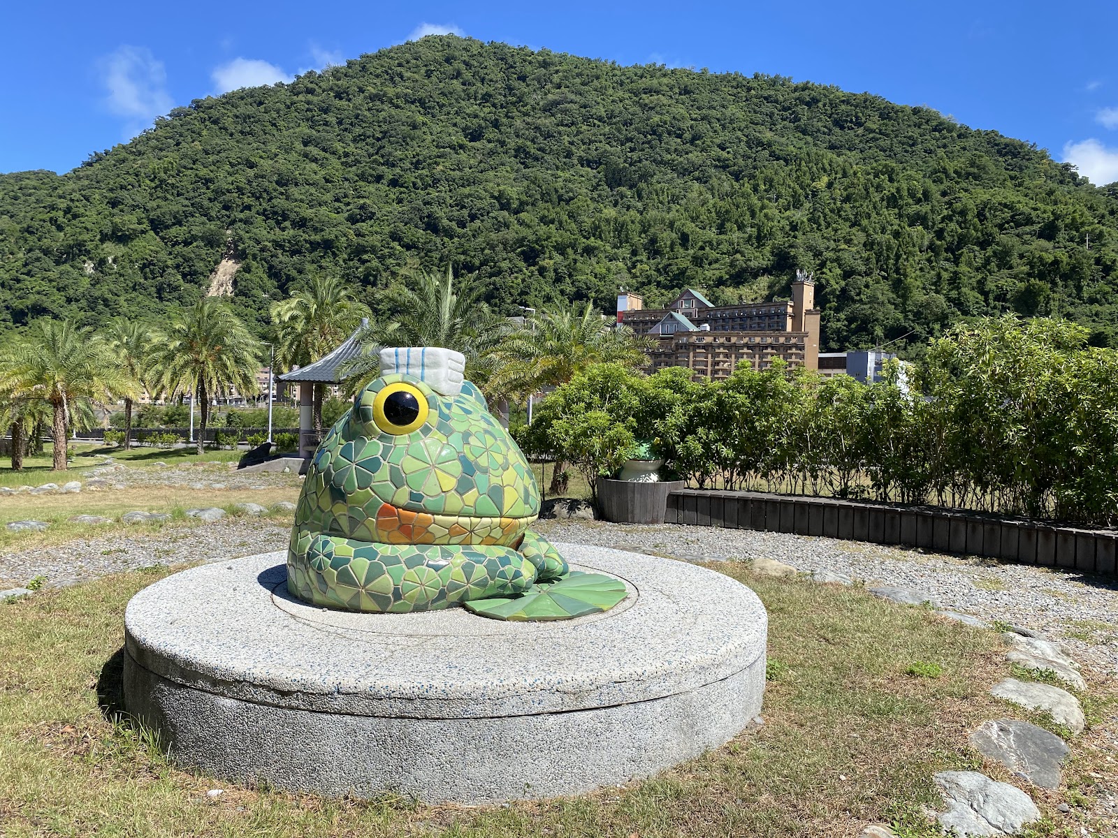 剛好住宿附近,早上沿著知本溪逛逛,公園內有可愛的青蛙🐸裝置藝術、涼亭及石頭步道,可惜沒什麼在維護,人煙稀少雜草叢生,附有停車場但被雜草擋住不太明顯~