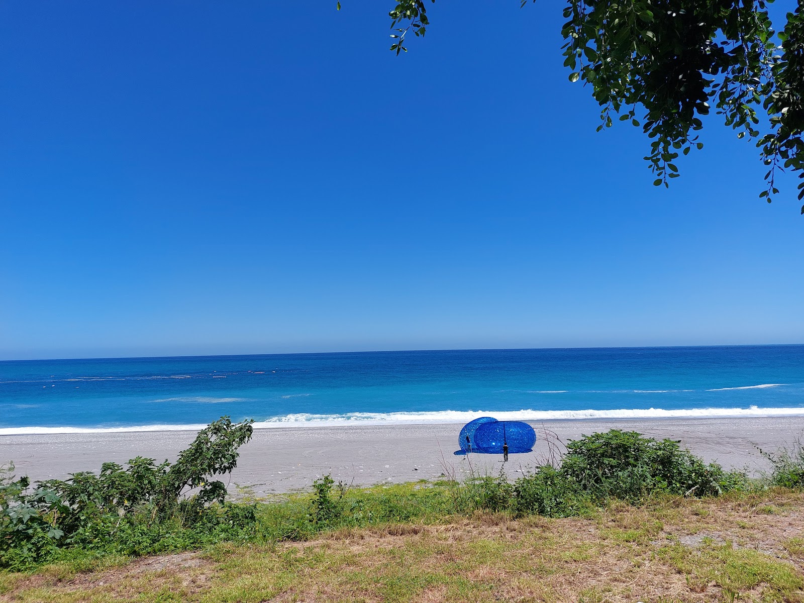 海灣很美 海很藍,可惜颱風把“小黑人及拖鞋”造成受損,暫時移除