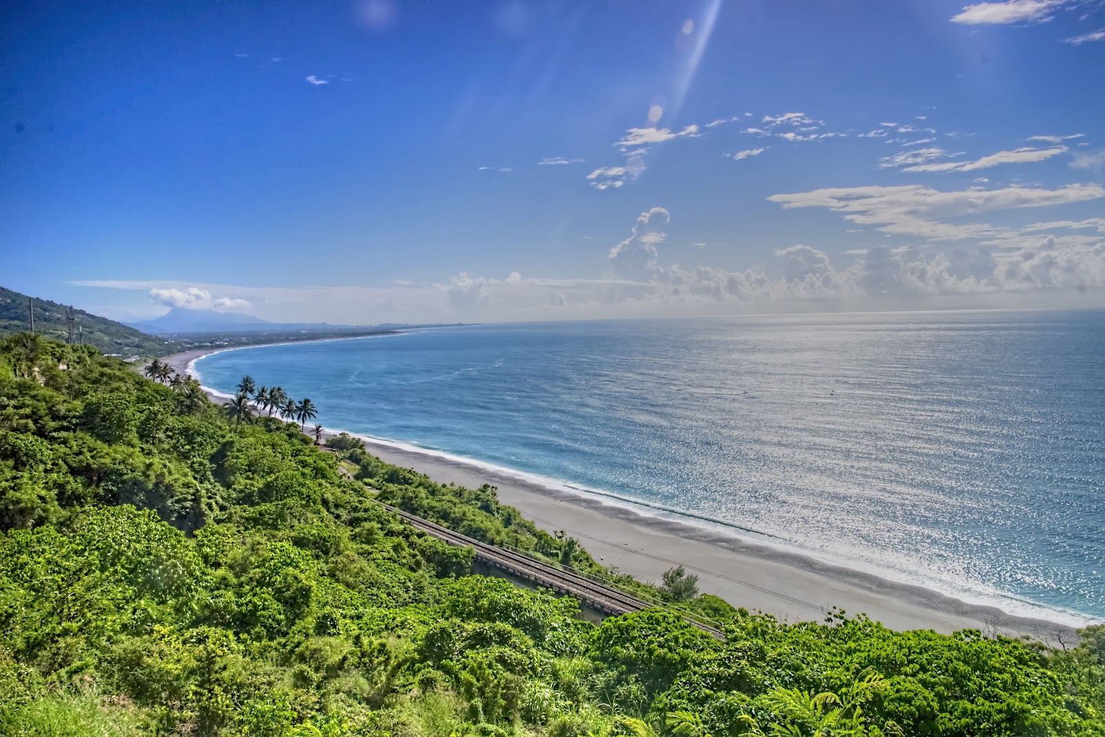 日出之鄉太麻里的華源海灣,適合網美拍照取景拍攝的地方,也可以遠眺18海哩外的綠島,天氣好的時候也能看到海面出現俗稱的台東藍。