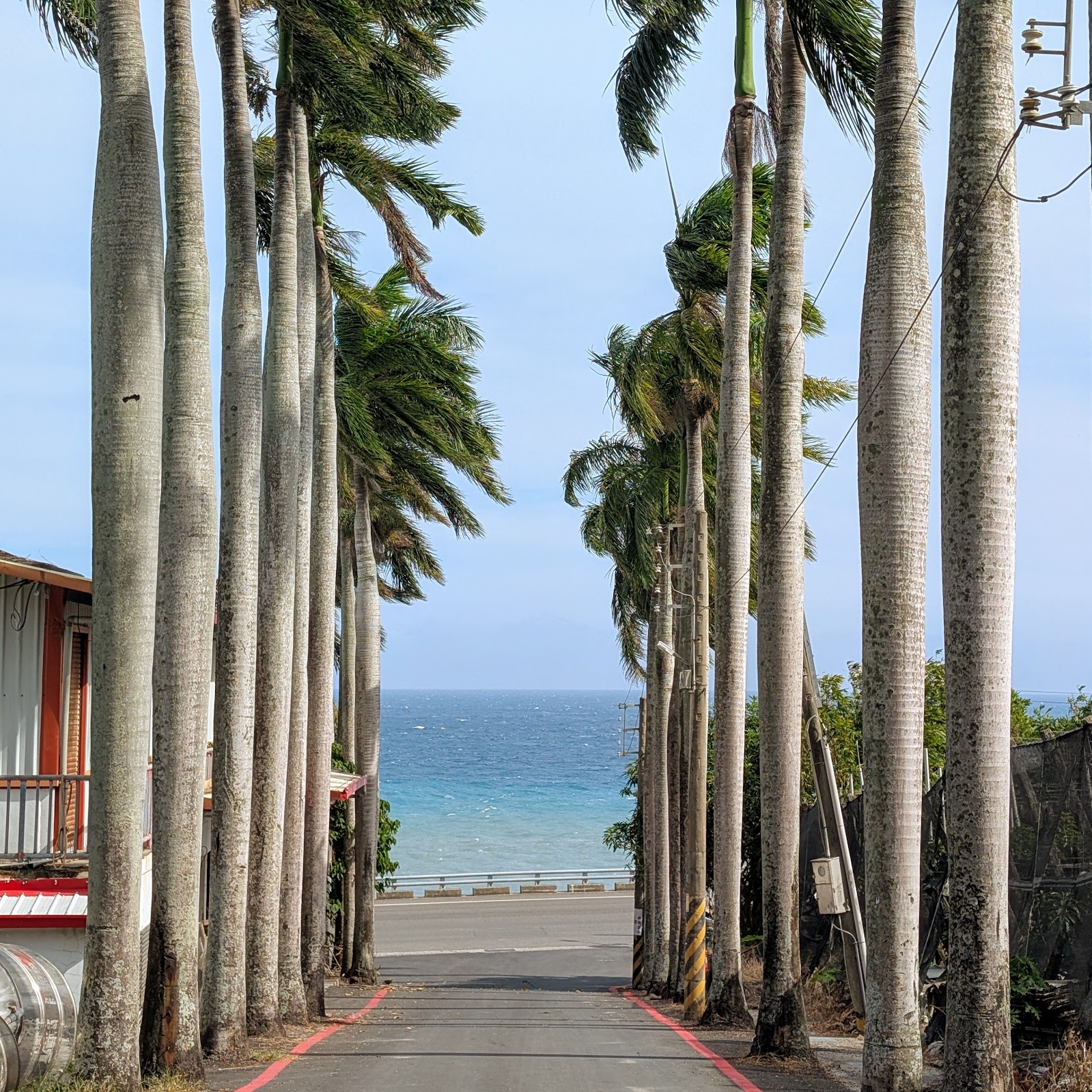 從台東南迴公路開往屏東方向,可以看到很美的海岸線,天氣很熱,海灣區有賣咖啡的店,還有賣自家種的現場剖的清甜新鮮椰子水,百香果,買了一杯椰子汁降温,拍到美麗風景。