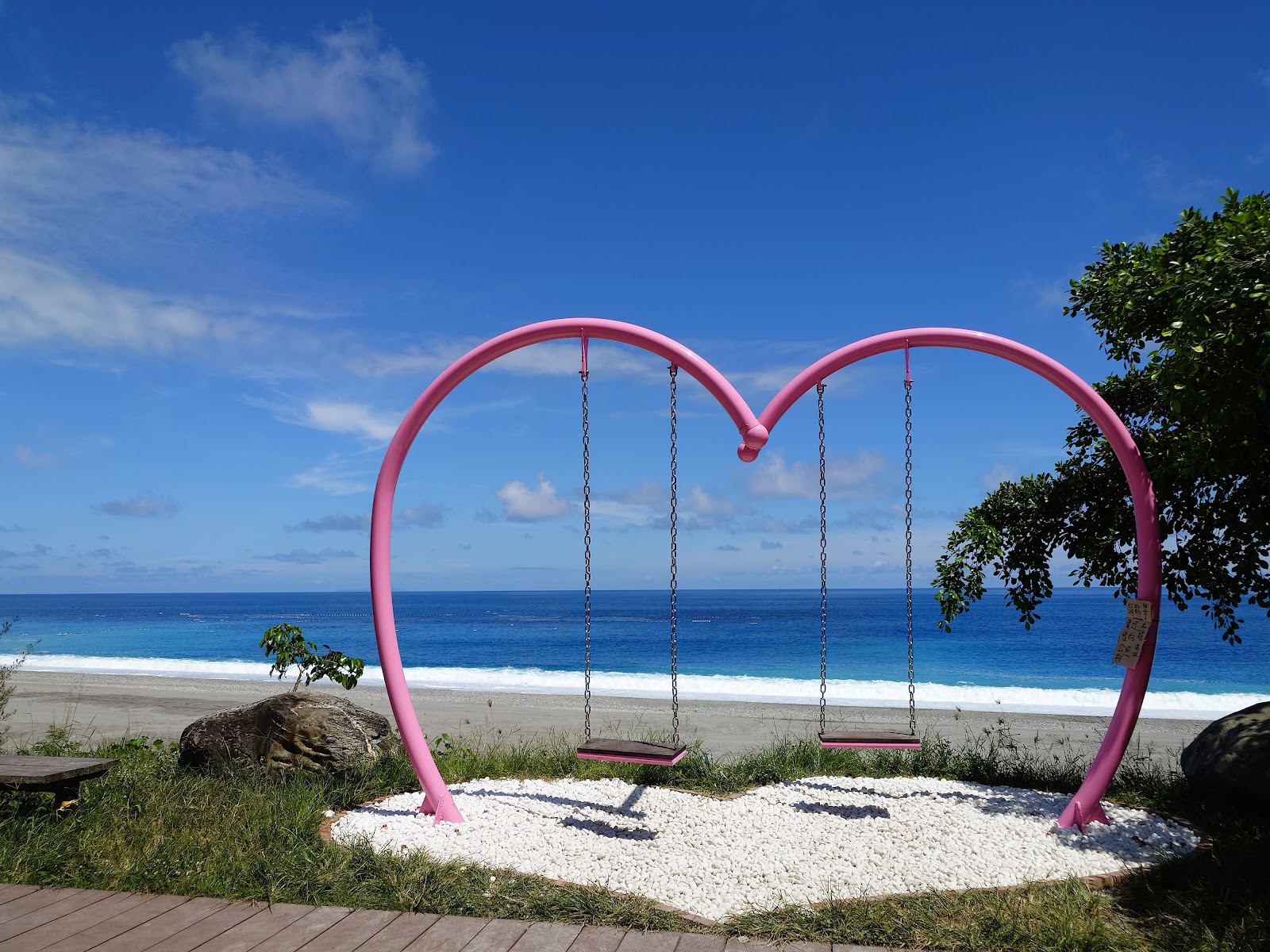 這裡的愛心鞦韆很美很適合拍照與打卡,另外一旁還有個觀景平台可欣賞到美麗海灣的景色。