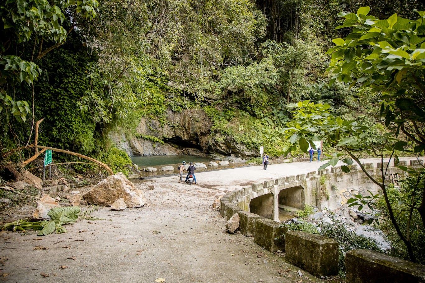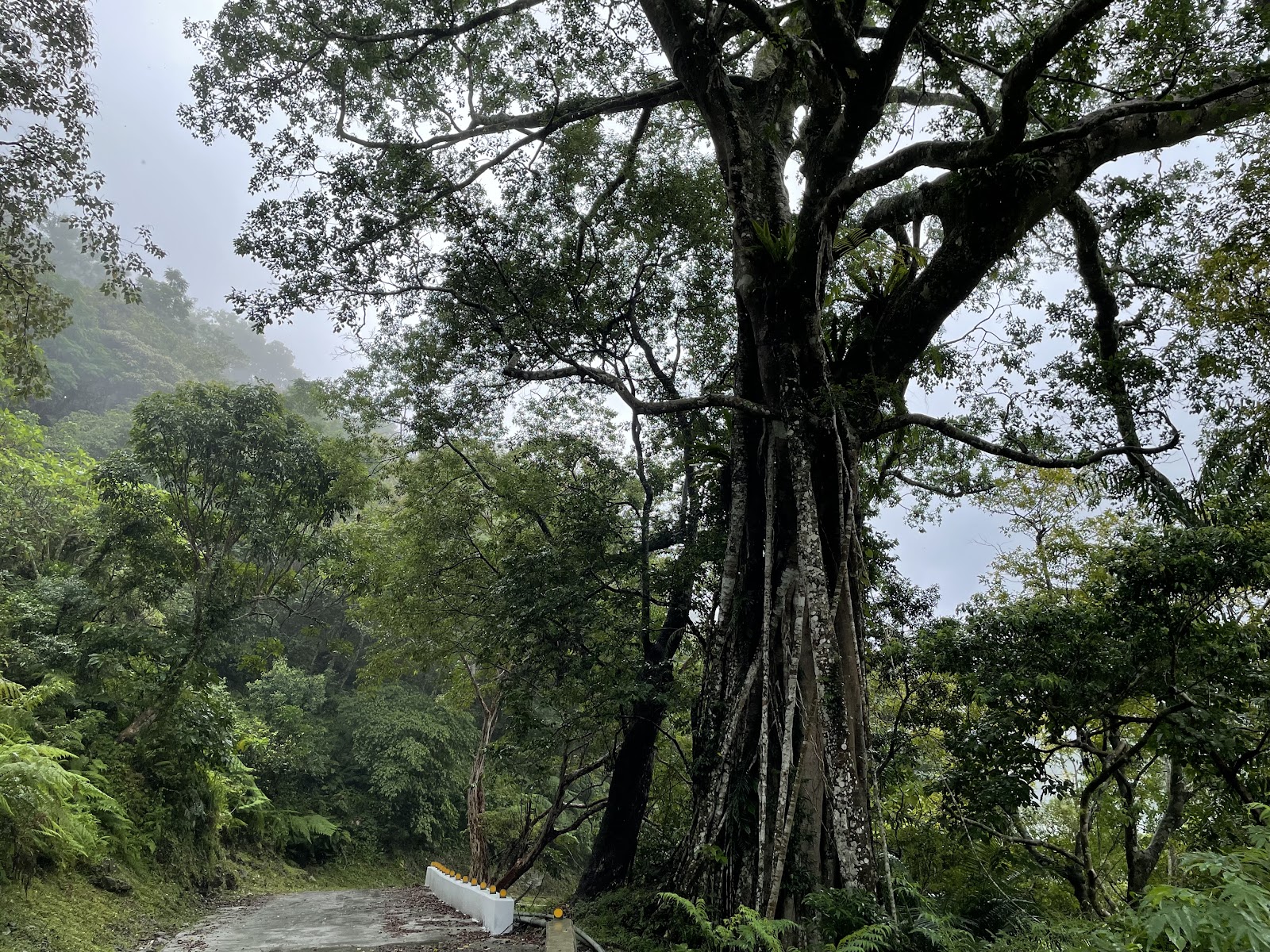 知本林道過7k崩壁後終點11k這是探險版,巨榕樹在8k左右,敢冒險愛運動的只要過落石段約50公尺過不久就能觀賞到筆直高聳的大榕樹,再往後雖然沒舖水泥但很好走又平緩一直到終點11k。