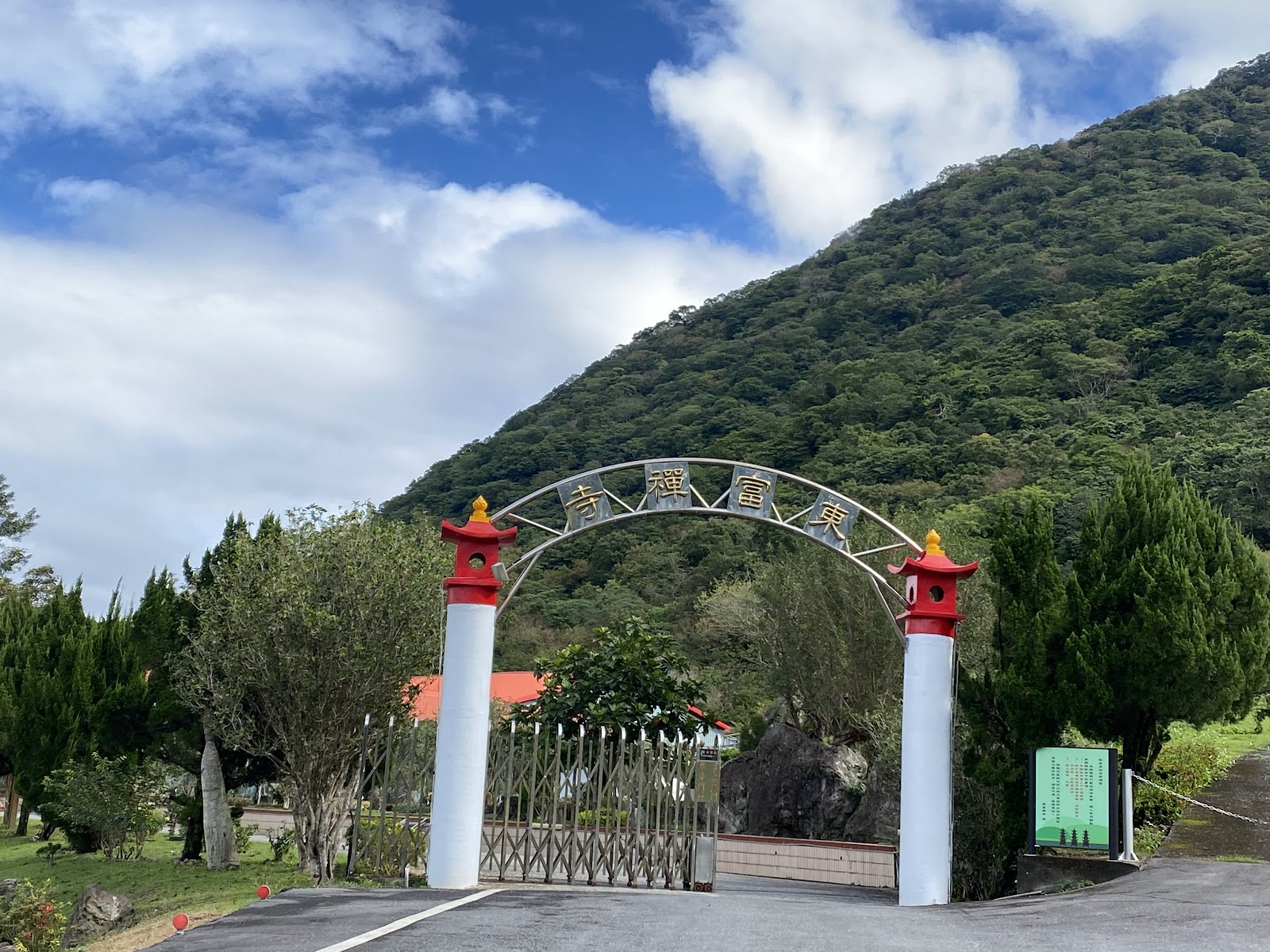 抵達後,可以開到一座簡單樸素的大門,上面就寫著東富禪寺,整個寺廟簡單樸素中規中矩,廟前有三座顯眼吸睛的黑色大香爐,在往前就是大片大片青青草原,再往前趨近,是一層一層類似梯田地型,鋪有一條蜿蜒而下的石板小徑,有一片竹林,池塘三四座,池塘裡有荷花蓮花,其餘皆是茵茵綠草,站在高處,居高臨下,可以俯瞰花東縱谷綿延山巒,還有山谷中散佈的稻田,後方則是中央山脈,整個景色非常夢幻美麗。