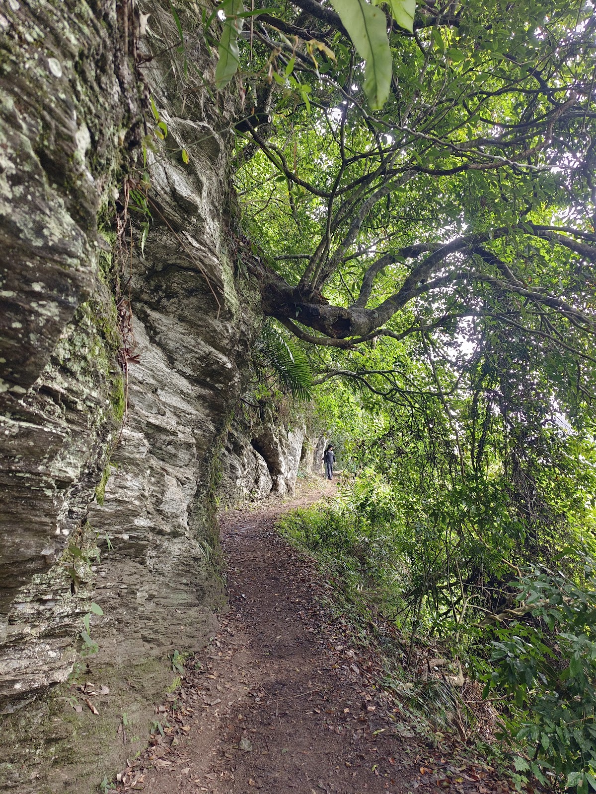 有熊出沒!有落石!還好這趟都沒遇到,只是連隻松鼠也都沒看到,眼界處處大山斷壁,步走很高吊橋和欣賞瀑布,這裡風景壯麗,河谷深明是很值得來的步道。步道前面2公里很好走,沒有高低大起伏或危險山勢,因為我走近2公里就回走了,再過去不知道路況,有遇山友說爬幾天可到埔里!我沒空也沒那體力!這裡空氣清晰人工鑿道很明顯,沿路樹林茂密好山好水好景色,尤其吊橋瀑布和峽谷,整片大山壁明顯刀削痕跡,驚嘆大自然鬼斧神工。此行有遇見一些西方外國人健行,大小攜家帶眷也有情侶,但明顯它們互不相識,也並非旅行團客,這在其它古道很難看到,可見這八通關古道東段受歡迎度,也很高興自己能來此健行