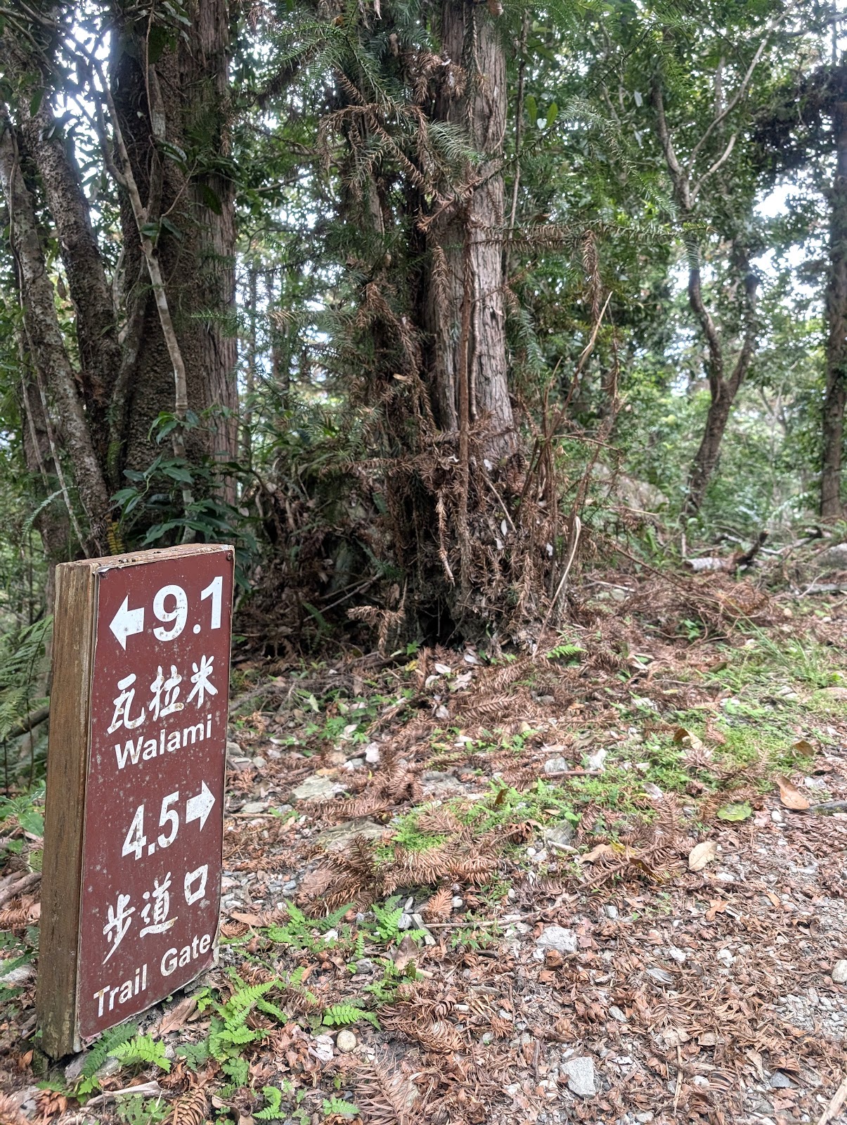 從這裡開始走瓦拉米古道。林相景色都美,平垣好走。有瀑布吊橋,一群非登山朋友不停的拍照,在第二吊橋折返。往下的瀑布觀景台也不難走,漂亮!