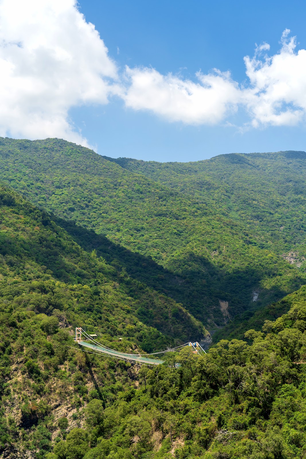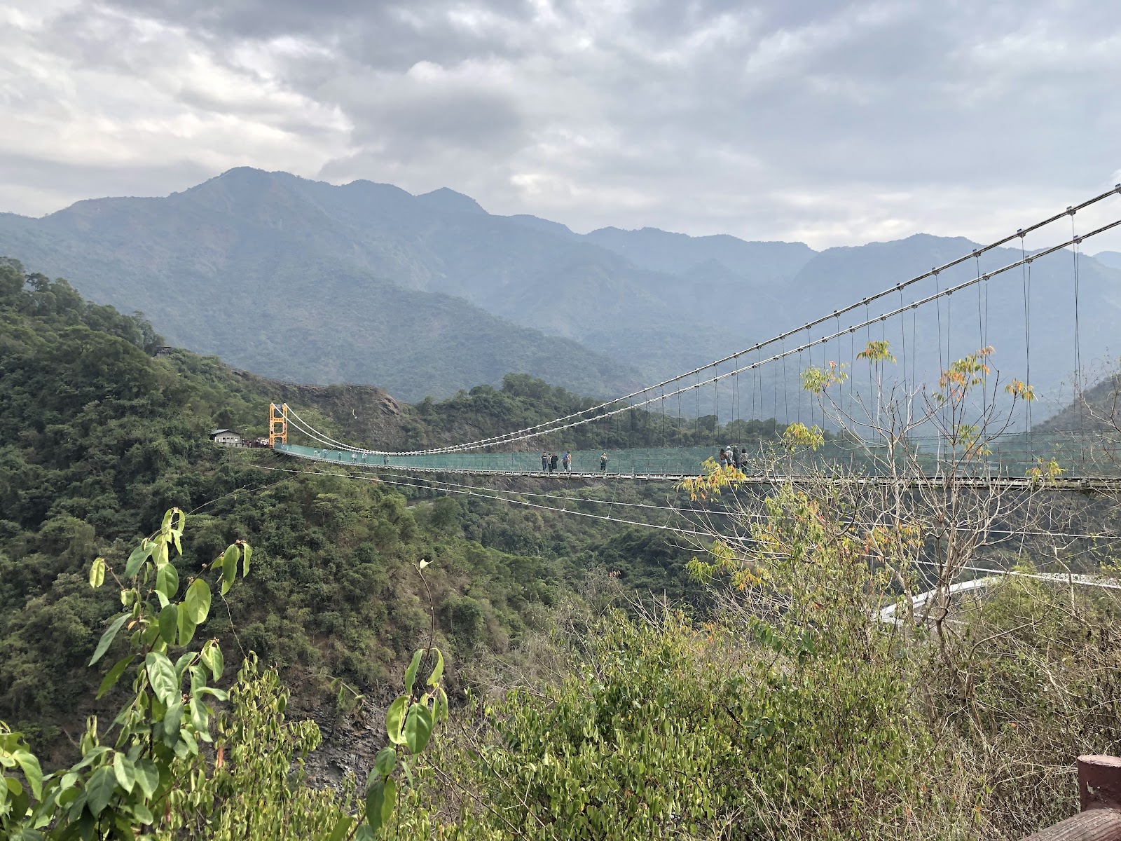 視野很好,吊橋本身很牢固,走在上面不會晃的很厲害,汽車可以停在迴轉區的停車場,再徒步走500公尺下去,若有年老的阿公阿罵,可以往前開到吊橋前,這邊還可以停一些車子,當然為了旅遊品質,還是建議儘量不要開下去,走過吊橋後還可以繼續往龍頭山步道走走,這邊都是搭建在稜線上的階梯,爬起來視野一定會很好,但防曬一定要做好,水份要帶夠。